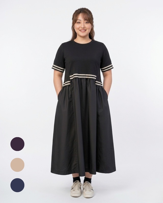 ■商品情報 とろんとした落ち感のある素材を使用したワンピース。 しなやかでやわらかな生地が、身体の動きに自然になじみ、着るだけで美しいシルエットを保ちます。 広がりすぎず、まとわりつきすぎない絶妙な重みがあり、気になるラインを拾いにくいのもポイントです。 ストレッチ性にも優れているため、腕を動かしたり座ったりといった日常の動作もスムーズ。 締めつけ感が少なく、長時間の着用でも疲れにくい快適な着心地です。 シワになりにくい素材なので、座り時間が長い日や移動の多い日にも扱いやすく、日常使いしやすい一枚に仕上がっています。 デザインはシンプルながら、胸元のタックが自然な立体感をプラス。 視線を上に引き上げることで、上半身をすっきりと見せてくれます。 裾に向かってゆるやかに広がるシルエットは、体のラインをやさしくカバーしながら全体のバランスを整えてくれます。 派手すぎず地味にも見えない絶妙な印象で、日常のお出かけからちょっとした外出まで幅広く活躍。 「着ていて楽」と「きちんと見える」を、無理なく両立したい方におすすめの一枚です。 ●一枚で着るのはもちろん、同素材のジャケットを合わせることで、統一感のあるスタイルが完成します。 コーディネートに悩みがちな方でも、迷わずきれいに決まるのも嬉しいポイントです。 ---------------------------------------- < セットアップ対応アイテム > ●とろみワンボタンジャケット https://umeya1951.base.shop/items/139796631 ---------------------------------------- ■ブランド SEPIA ■素材 ポリエステル 100% ■カラー クロ ■サイズ寸法 【サイズ:F3】(メーカーの表記サイズです) バスト:122cm 着 丈:110cm 肩 幅:41cm アームホール:26cm 袖 口:15cm 袖 丈:41cm ※採寸方法についてはこちらをご覧ください https://umeya1951.base.shop/p/00016 ■洗濯 手洗い可 ■厚み(5段階評価) 薄い ☆☆★☆☆ 厚い ■柔らかさ(5段階評価) 柔らかい ☆☆★☆☆ 硬い ■伸縮(5段階評価) あり ☆☆☆☆★ なし ■透け感(5段階評価) あり ☆☆☆☆★ なし ■生産国 日本 【ご注意下さい】 ※当店の商品は実店舗と在庫を共有しております。 画面上の在庫はリアルタイムには反映されておりません。入れ違いによる品切れについてはご容赦くださいませ。 ※光の具合やご覧の機器のディスプレイ差によって色味が違って見える場合があります。 【ご購入の際にこちらをご確認ください】 https://umeya1951.base.shop/p/00002