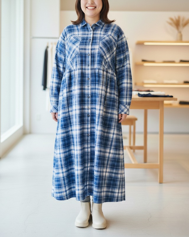 ■商品情報 ミドル世代も安心して着られる、きれいめカジュアルなデニムワンピース。 デニムといっても、薄手でやわらかな風合い。 ごわつきがなく、指先にすっとなじむような質感で、年齢を重ねた肌にもやさしく寄り添います。 動くたびにやわらかく揺れ、体をふわりと包み込むような安心感も魅力です。 縦の切替ラインが自然と視線を縦へ流し、すっきりとした印象に。 一枚でさらっと着るだけでも、どこか整って見えるデザインです。 “体型を隠す服”ではなく、 “自分らしく整う服”。 そんな一着として、選んでいただけたらうれしいです。 ■ブランド AS KNOW AS olaca ■素材 綿 100% ■カラー インディゴ ■サイズ寸法 【サイズ:3】(メーカーの表記サイズです) バスト:114 cm 着 丈:112 cm ゆき丈:62 cm アームホール:24 cm 袖 口:15 cm ※採寸方法についてはこちらをご覧ください https://umeya1951.base.shop/p/00016 ■洗濯 手洗い可 ■厚み(5段階評価) 薄い ☆★☆☆☆ 厚い ■柔らかさ(5段階評価) 柔らかい ☆★☆☆☆ 硬い ■伸縮(5段階評価) あり ☆☆☆☆★ なし ■透け感(5段階評価) あり ☆☆☆☆★ なし ■生産国 中国 【ご注意下さい】 ※当店の商品は実店舗と在庫を共有しております。 画面上の在庫はリアルタイムには反映されておりません。入れ違いによる品切れについてはご容赦くださいませ。 ※光の具合やご覧の機器のディスプレイ差によって色味が違って見える場合があります。 【ご購入の際にこちらをご確認ください】 https://umeya1951.base.shop/p/00002