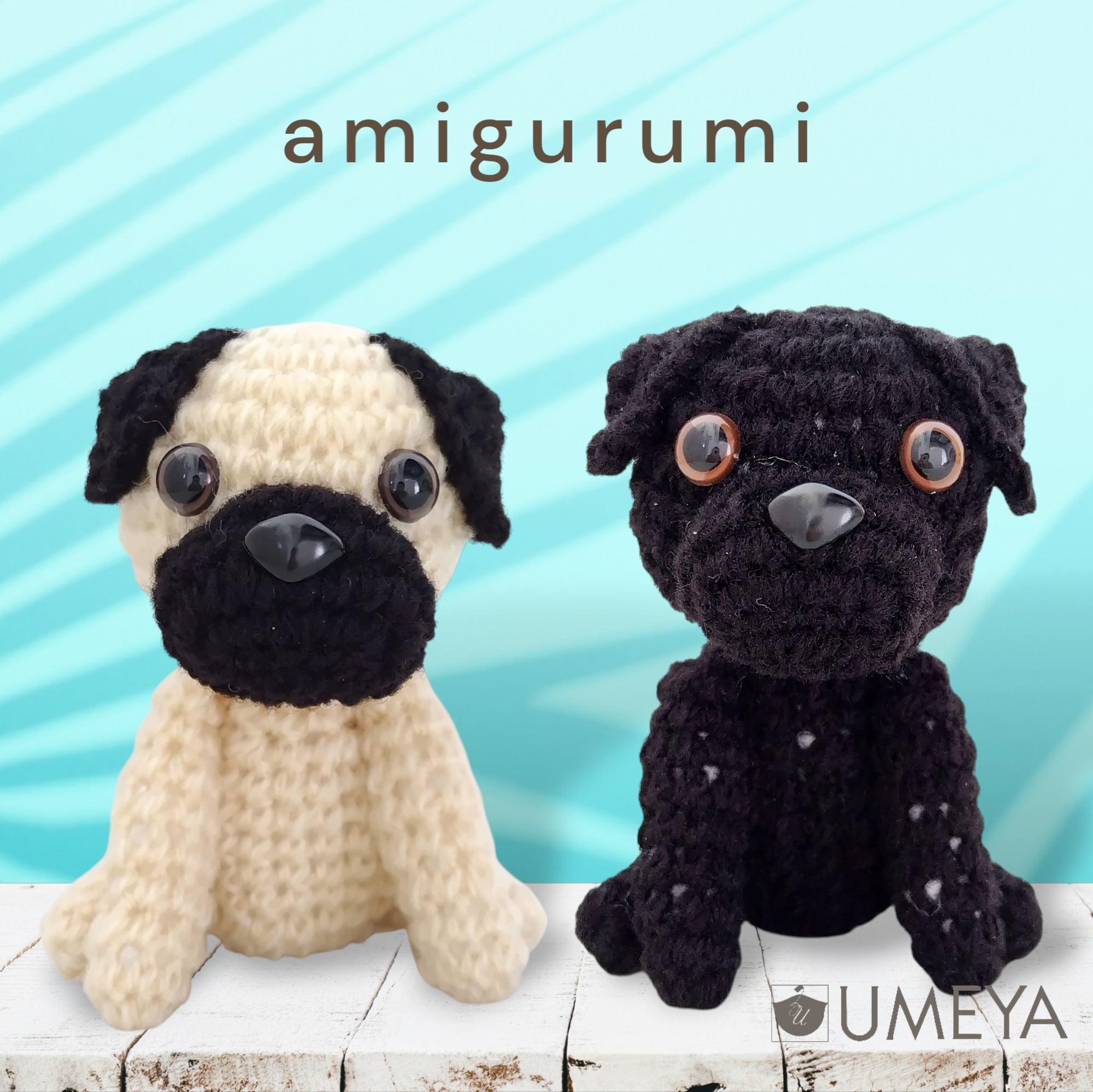 当店人気のハンドメイドあみぐるみワンコに、小さい耳が可愛らしい「パグ(全2種)」が仲間入りしました🐶🐾