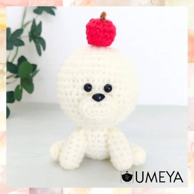 あみぐるみ/ビションフリーゼ(りんごモチーフ付き)