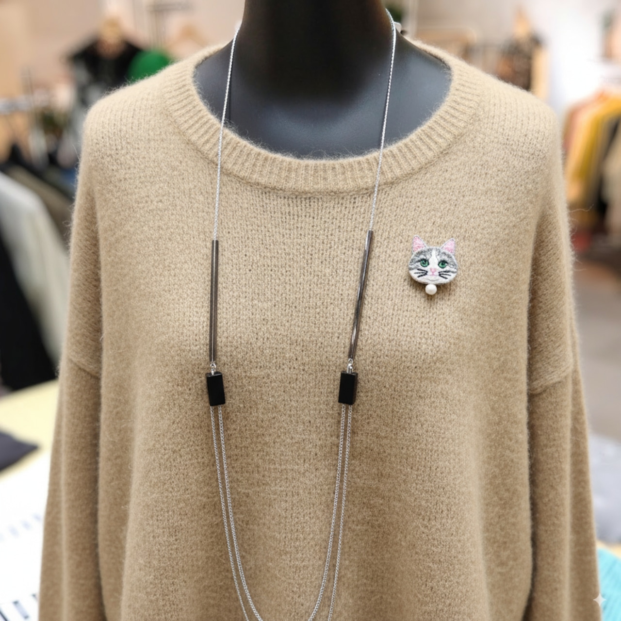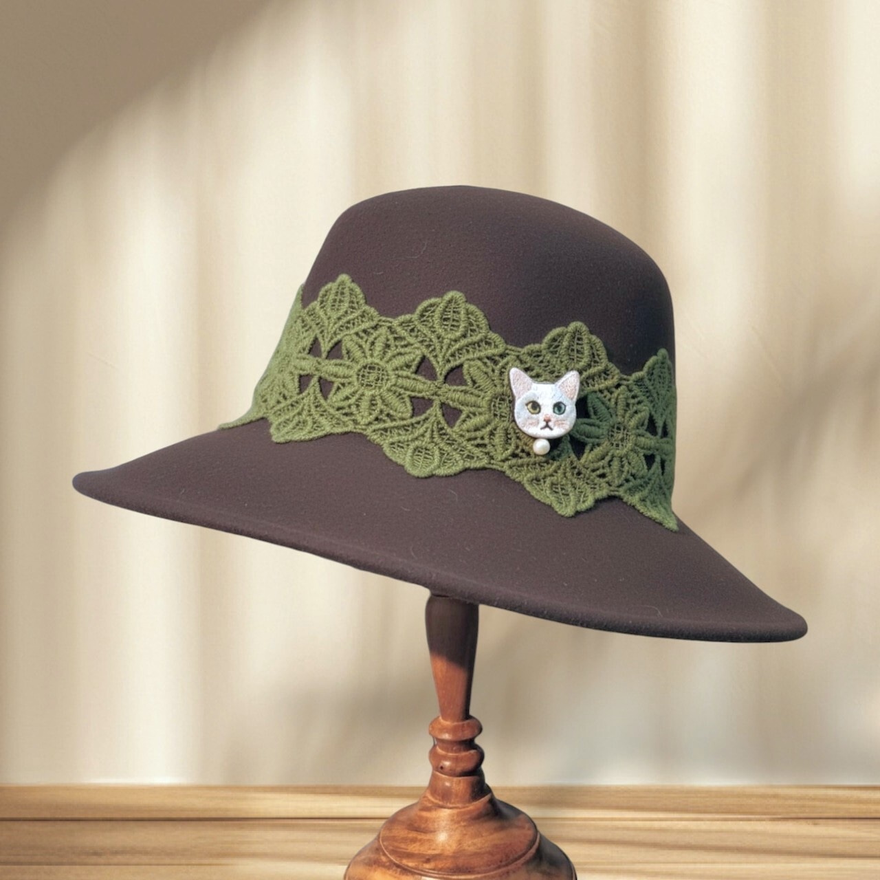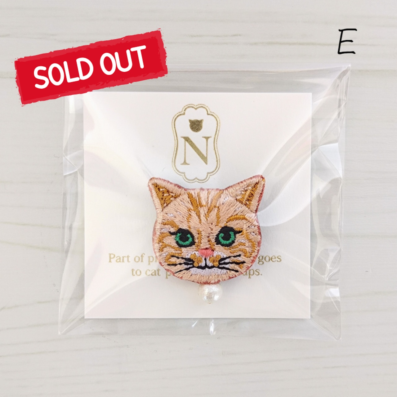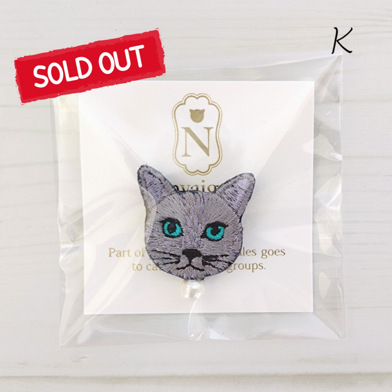 ひとつひとつ丁寧に仕立てられたハンドメイドの猫刺繍ブローチ。
