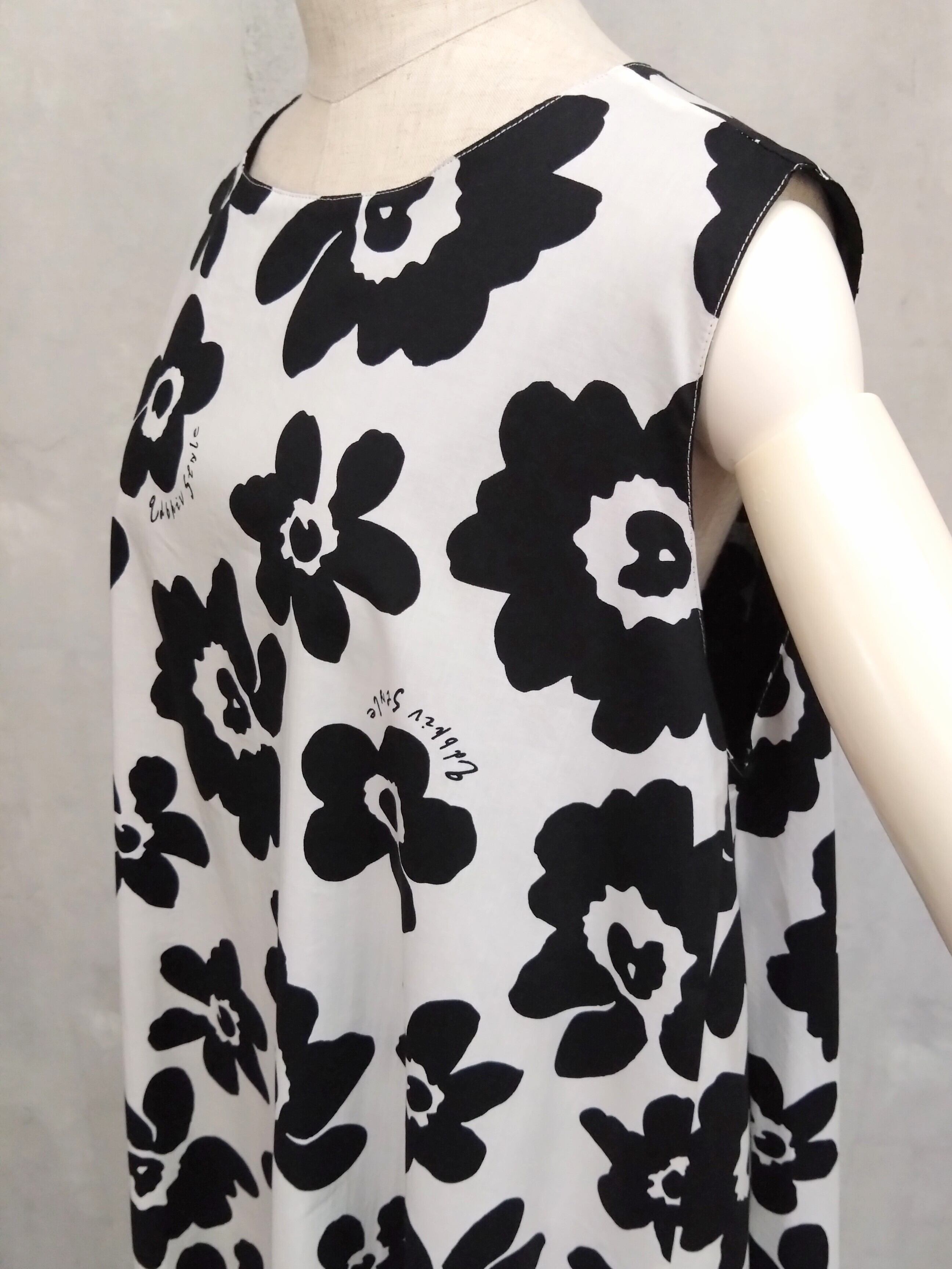 モノトーンフラワーロングワンピース