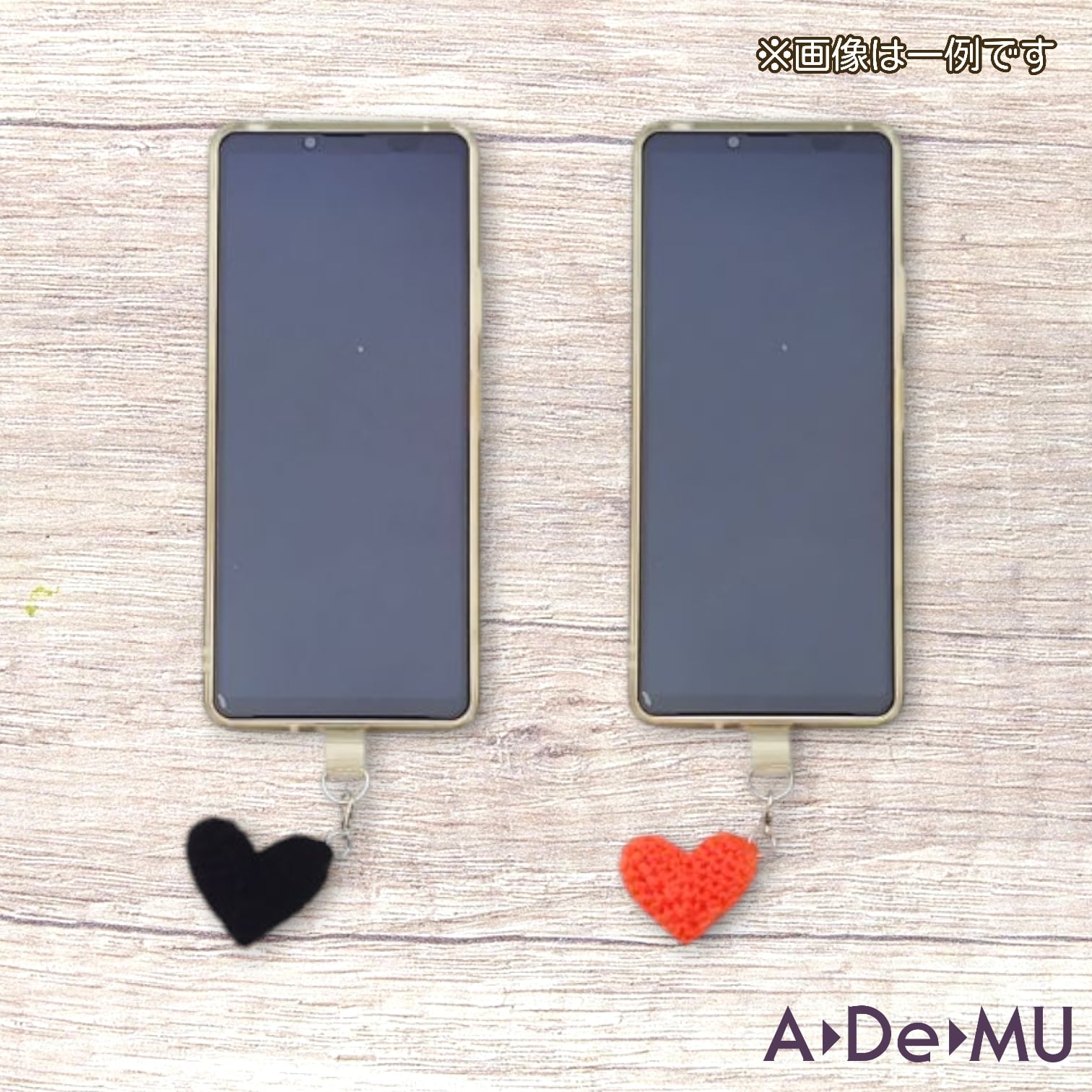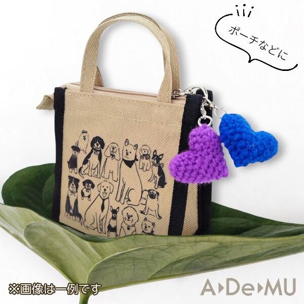 アクリル100%の毛糸で編んだ、ぷっくり可愛いハート型のめじるしアクセサリー。