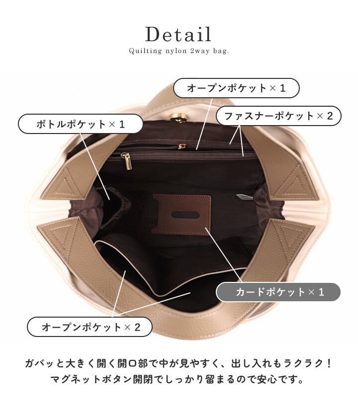 2WAY キルティングナイロントート(3カラー)【LIZDAYS リズデイズ】