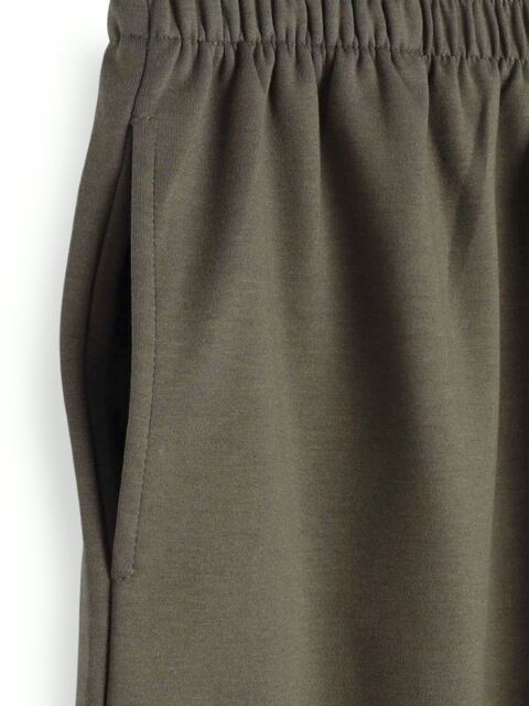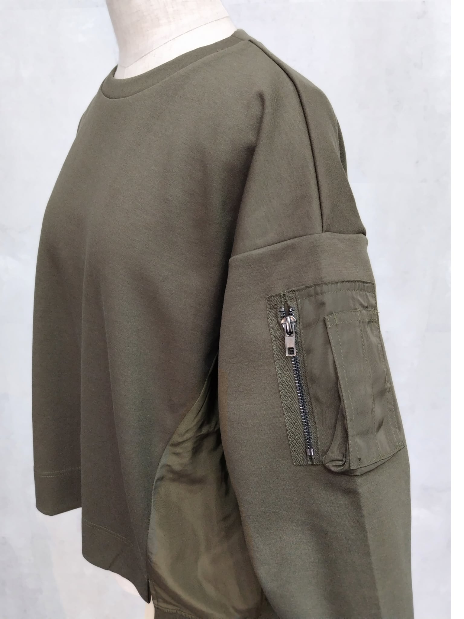 動きやすさがありながらも生地にほんのりハリがあるので、体のラインを拾いにくく上品なシルエットを保ちます。