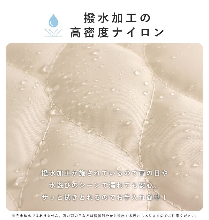素材は高密度ナイロン。軽やかで撥水加工もされているので、雨の日も気兼ねなく持ち歩けます。