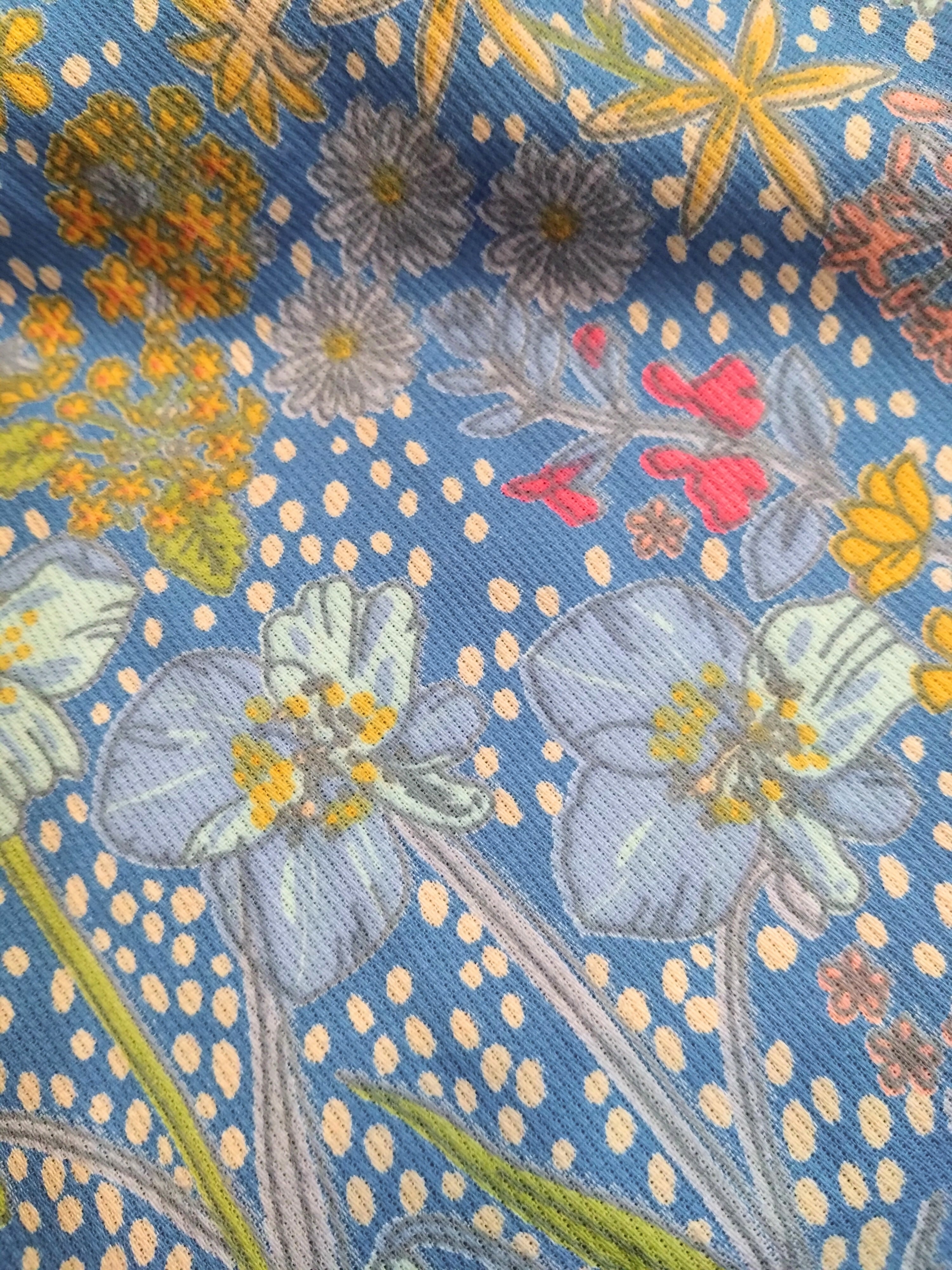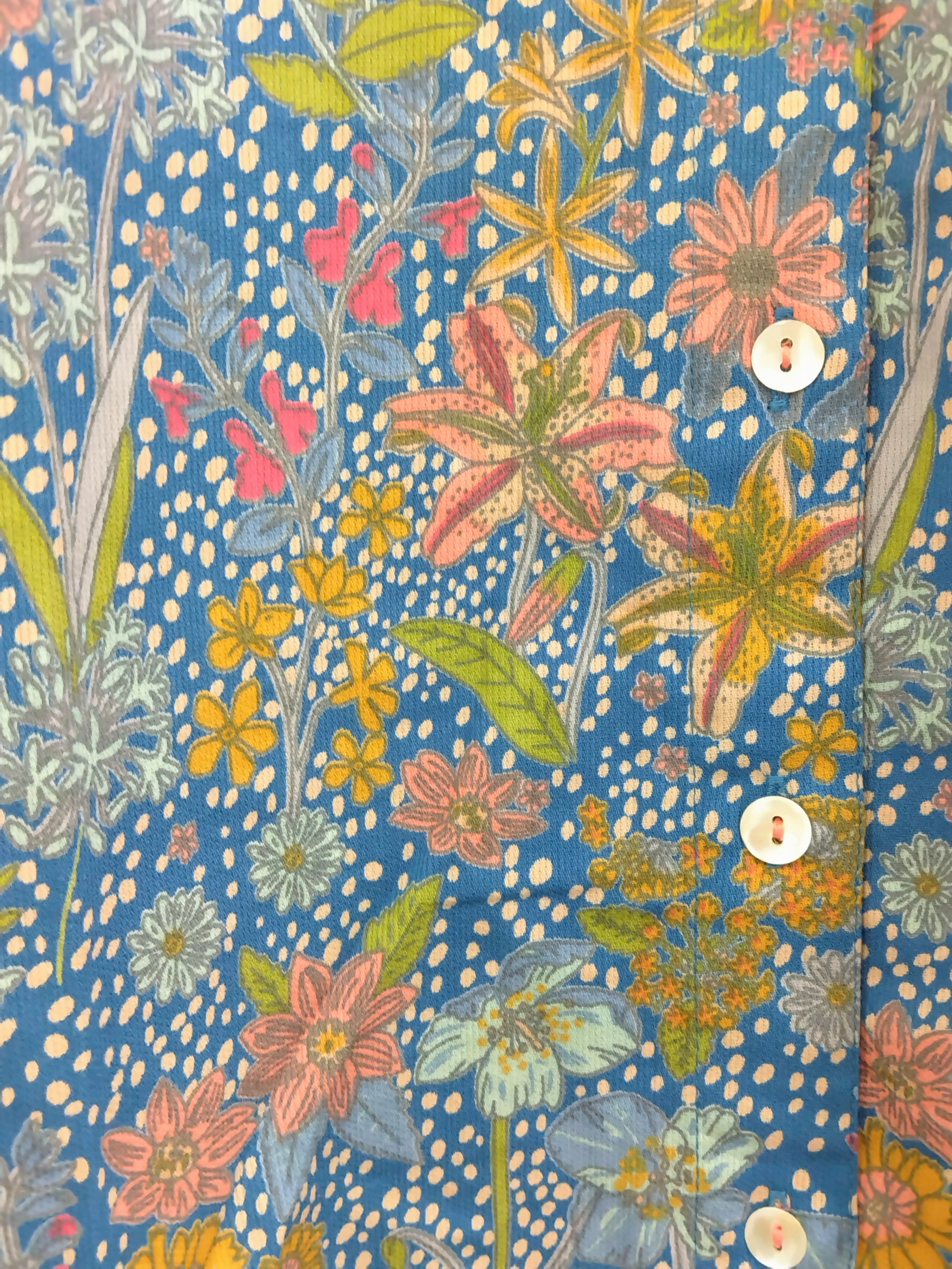 やわらかな薄手コーデュロイに、様々な草花のモチーフをハンドスクリーンで丁寧にプリント。