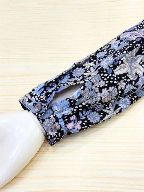 やわらかな薄手コーデュロイに、様々な草花のモチーフをハンドスクリーンで丁寧にプリントしたブラウス。