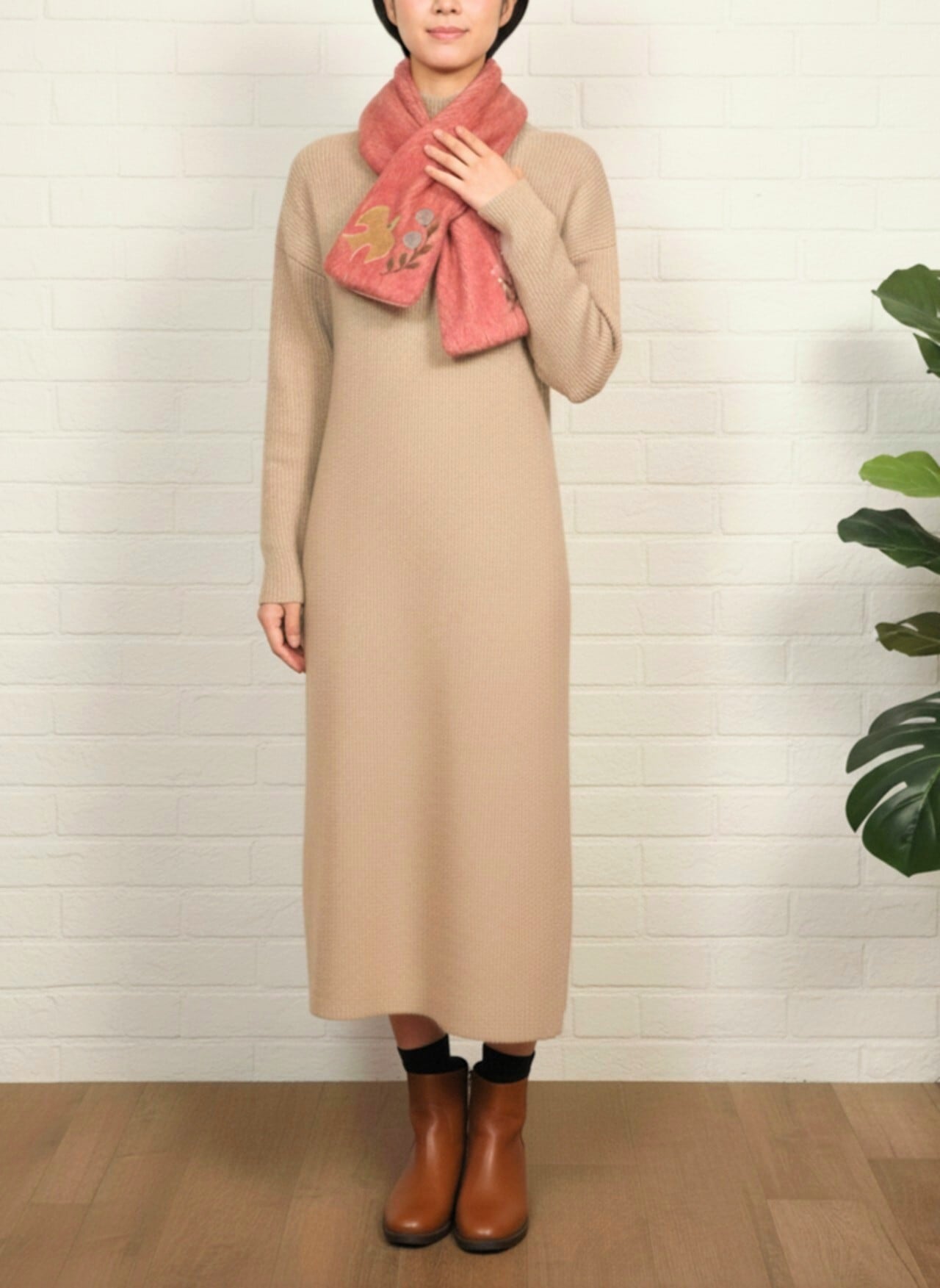 外出先でもおうちでも、首もとを少し温めるだけで心までほぐれる――そんな優しさを感じさせてくれるのが、このミニショールです。