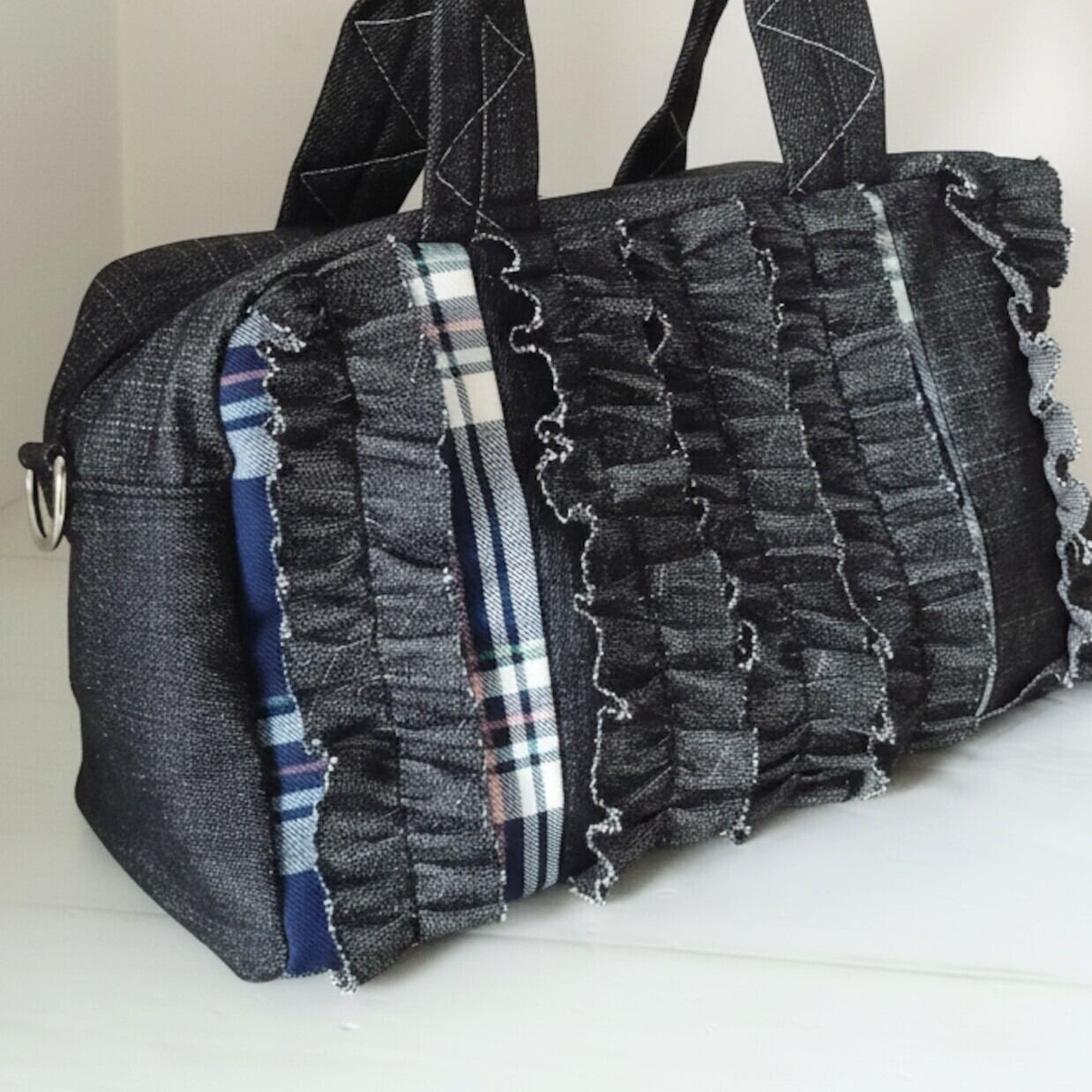 派手すぎず、可愛すぎない。大人の女性にちょうどいいバランスのフリル×パッチワークデザインのボストンバッグ。