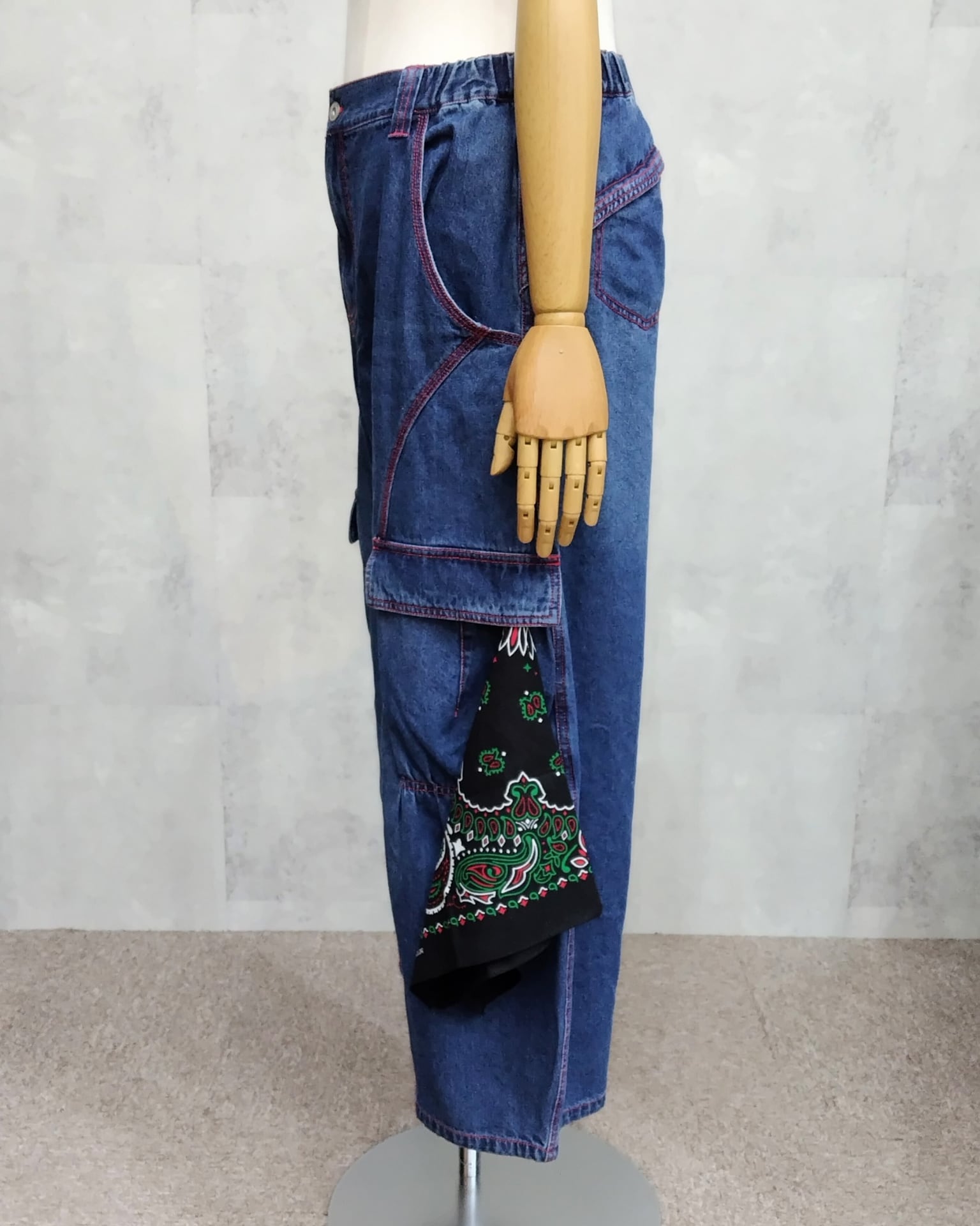 ポケットには付属のバンダナをIN。カジュアルスタイルに遊び心を添えてくれます。