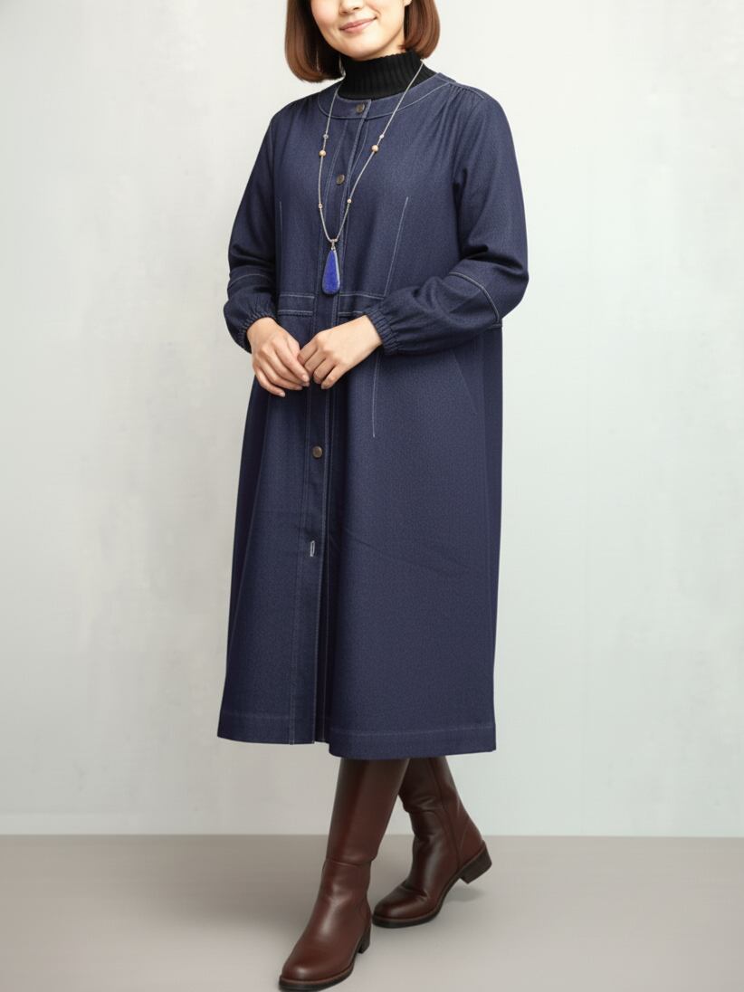 程よい厚みのデニム生地は季節を問わず活躍し、羽織としてもワンピースとしても着こなせる万能デザイン。