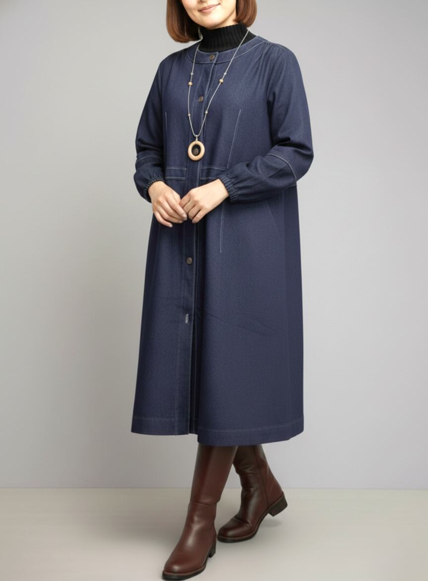 そんなお悩みをそっと軽くしてくれるのが、このデニムロングジャケットです。