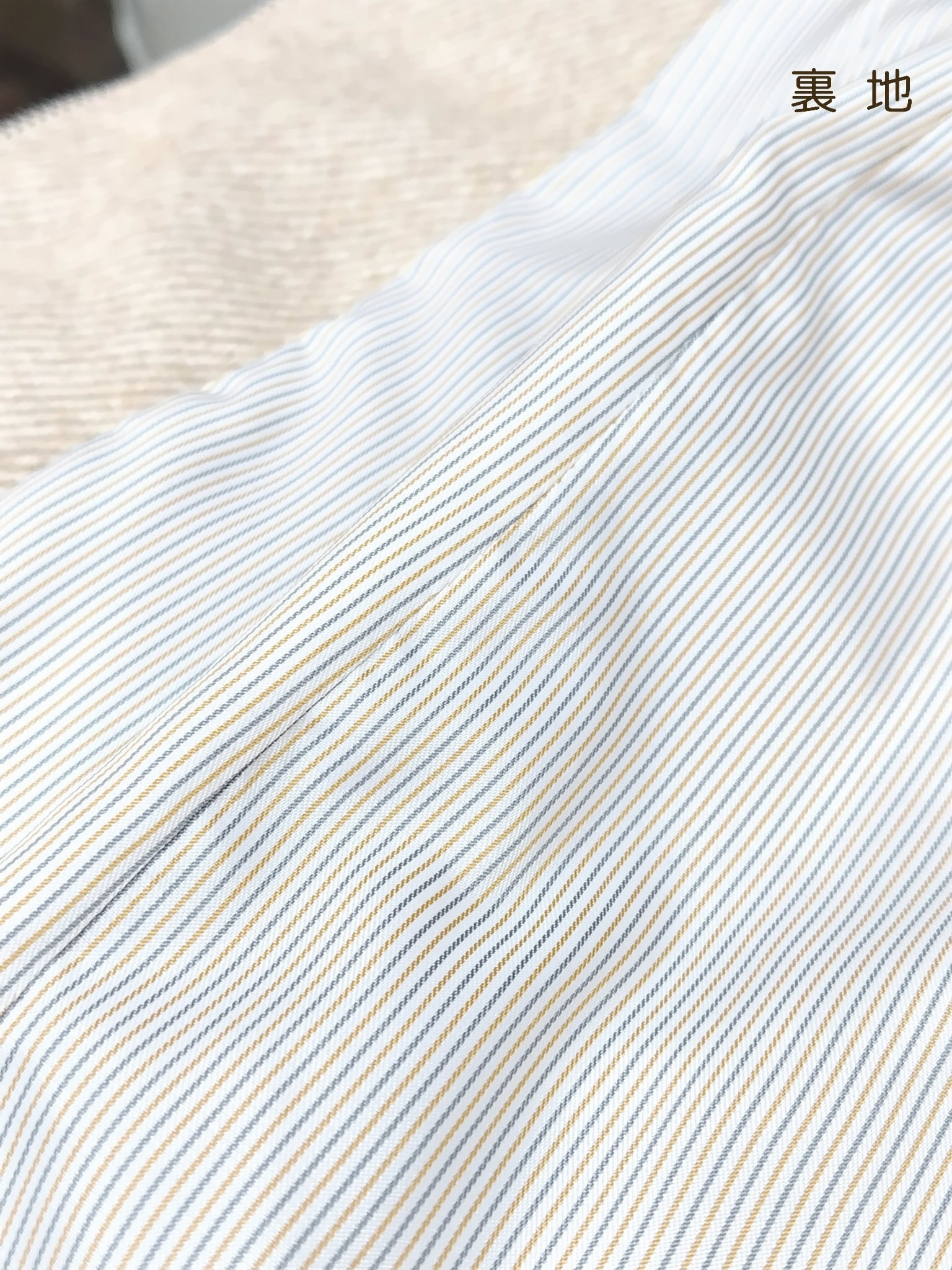 全体は厚すぎないつくりで横に広がって見えにくく、ほどよいメリハリでシルエットをきれいに整えます。