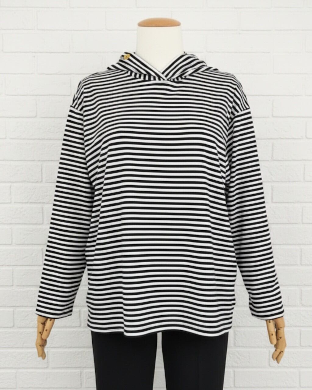 上品なボーダーに、さりげなく添えた襟元のスマイルワッペンがほどよい遊び心をプラス。