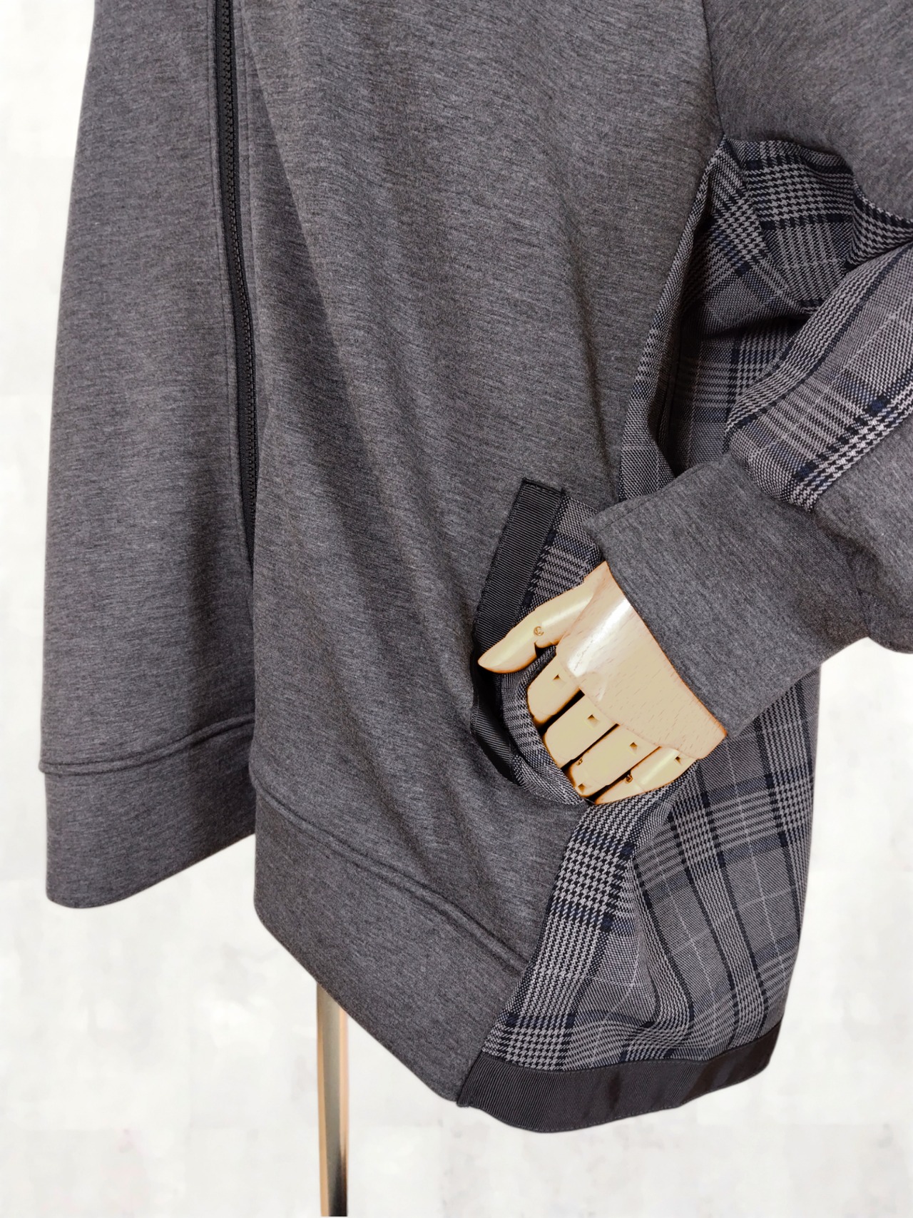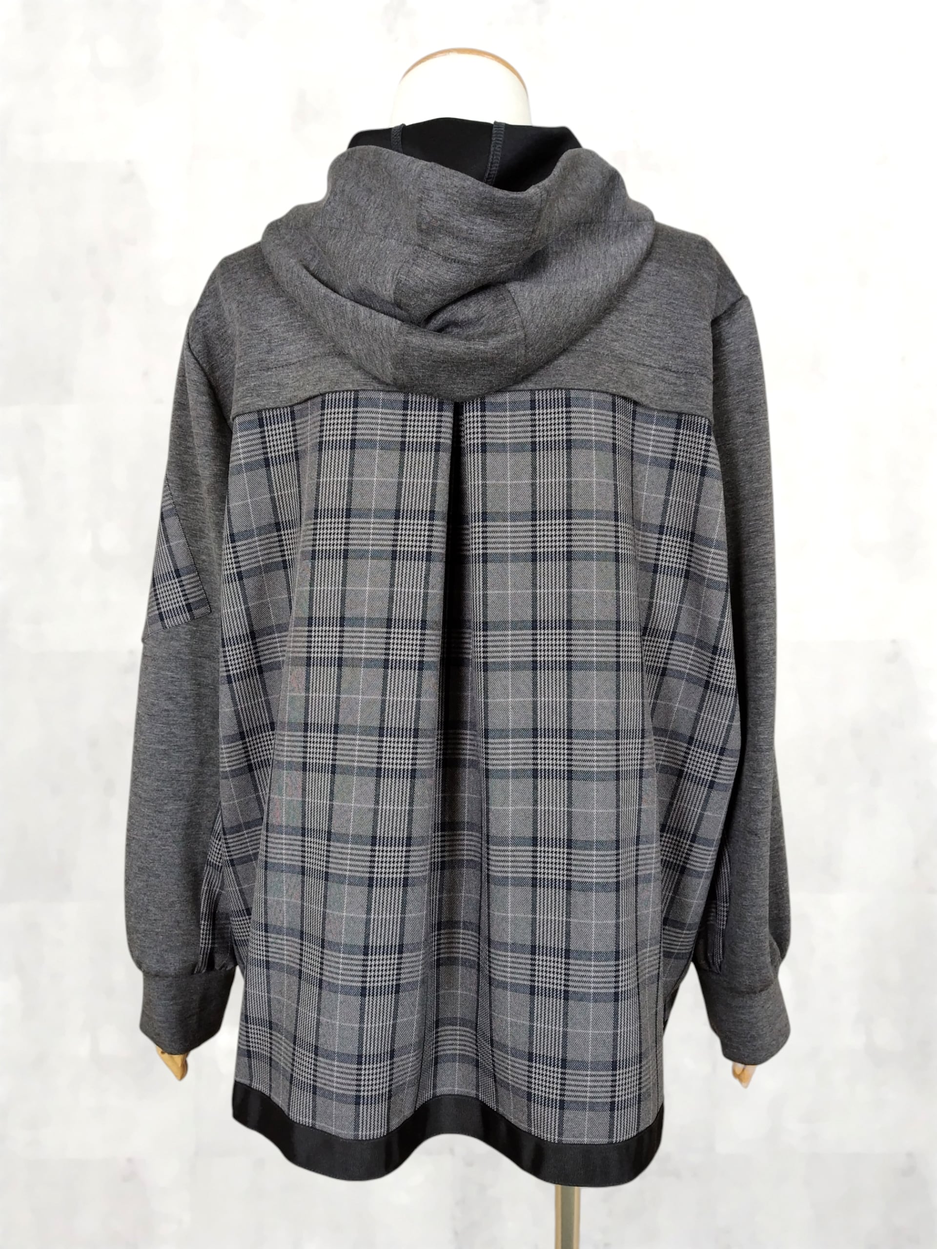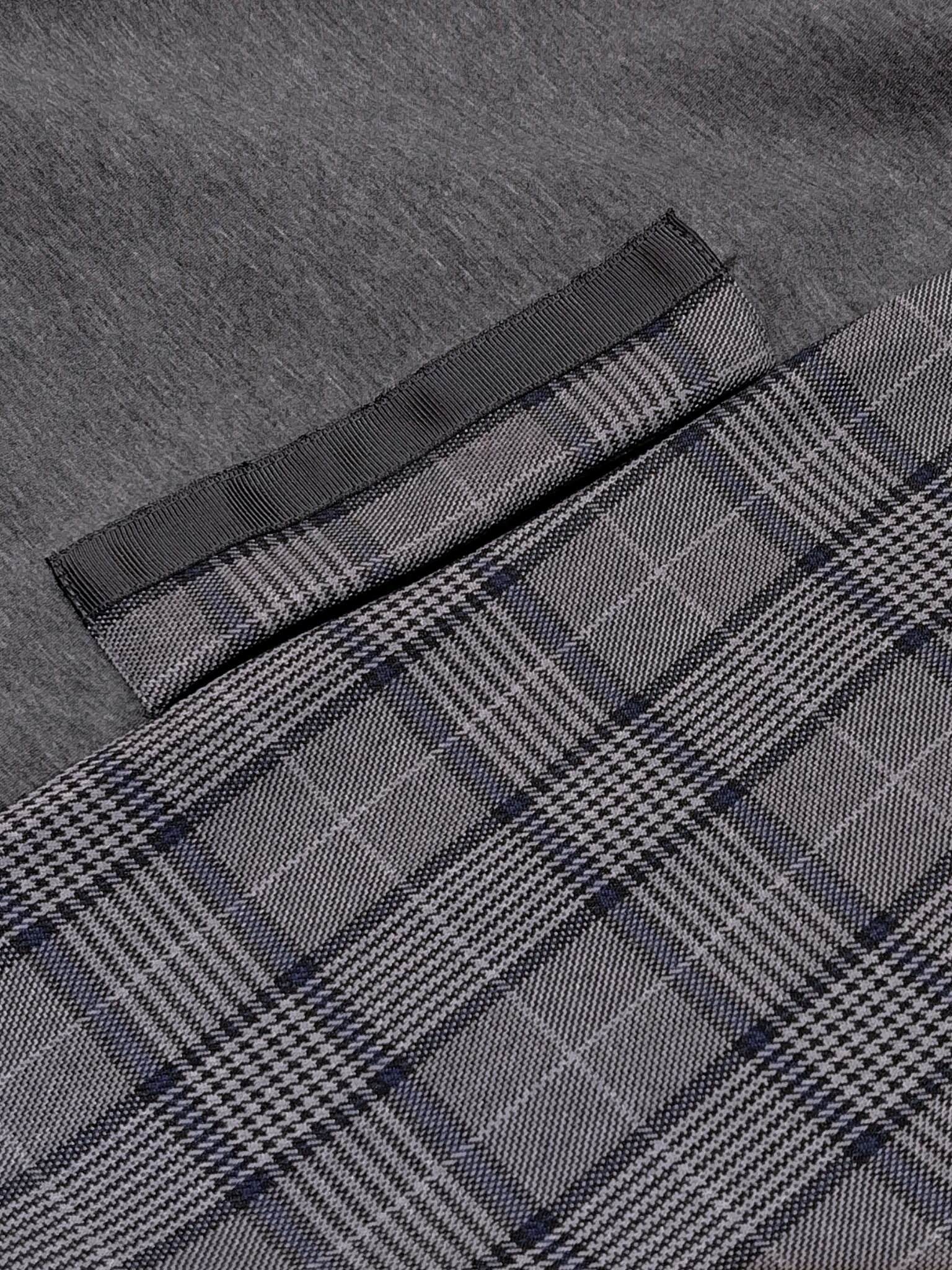 無地とチェックを組み合わせたドッキングデザインは、着るだけで程よいアクセントに。