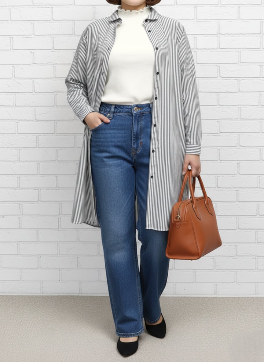 そんな毎日にそっと寄り添ってくれる、チュニック丈のストライプロングシャツです。