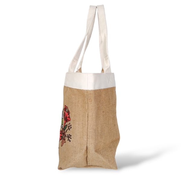 地球環境にやさしいジュート素材のミニバッグ。