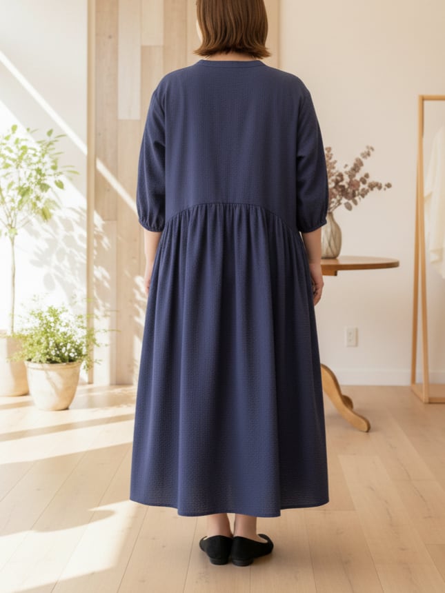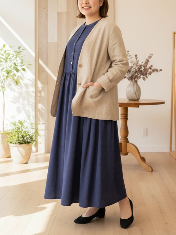 季節の変わり目、「何を着たらいいのか分からない日」に、静かに手に取りたくなるワンピースです。