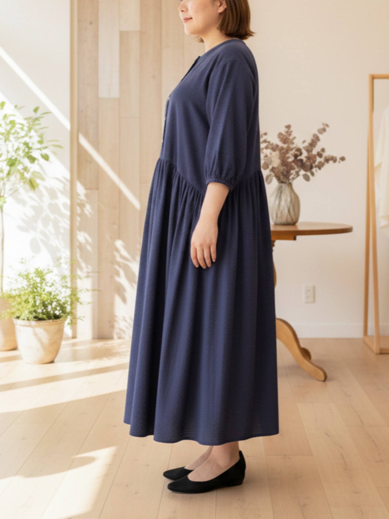 体型を隠すための服ではなく、今の身体をそのまま受け止めて、整えて見せてくれる感覚があります。