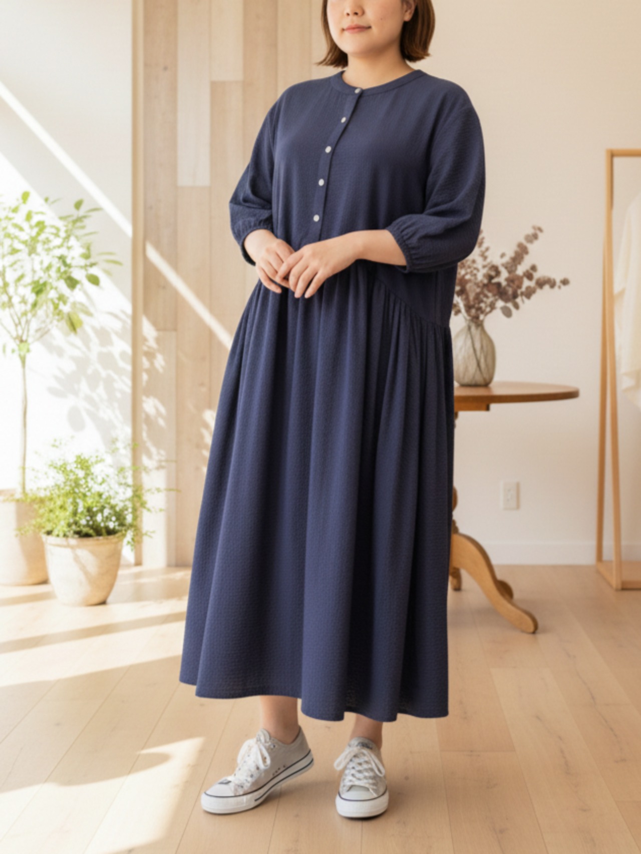 どちらの場合も「無理をしている感じ」にならないところが、このワンピースの安心感です。