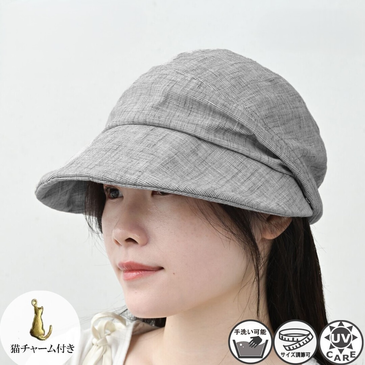 大きめのツバが顔まわりをやさしく包み、春夏の強い日差しからお肌を守ってくれる安心感のある帽子です。