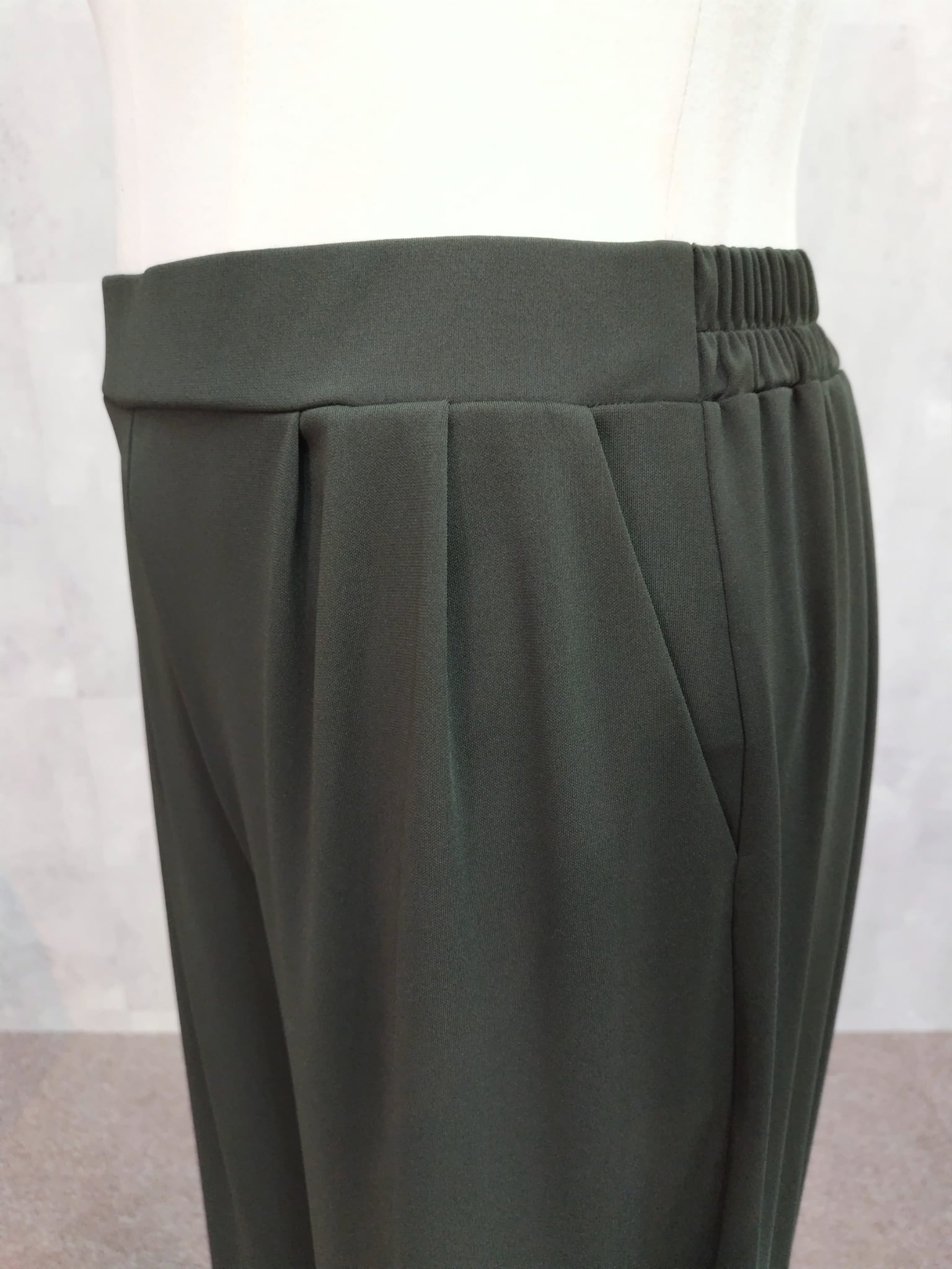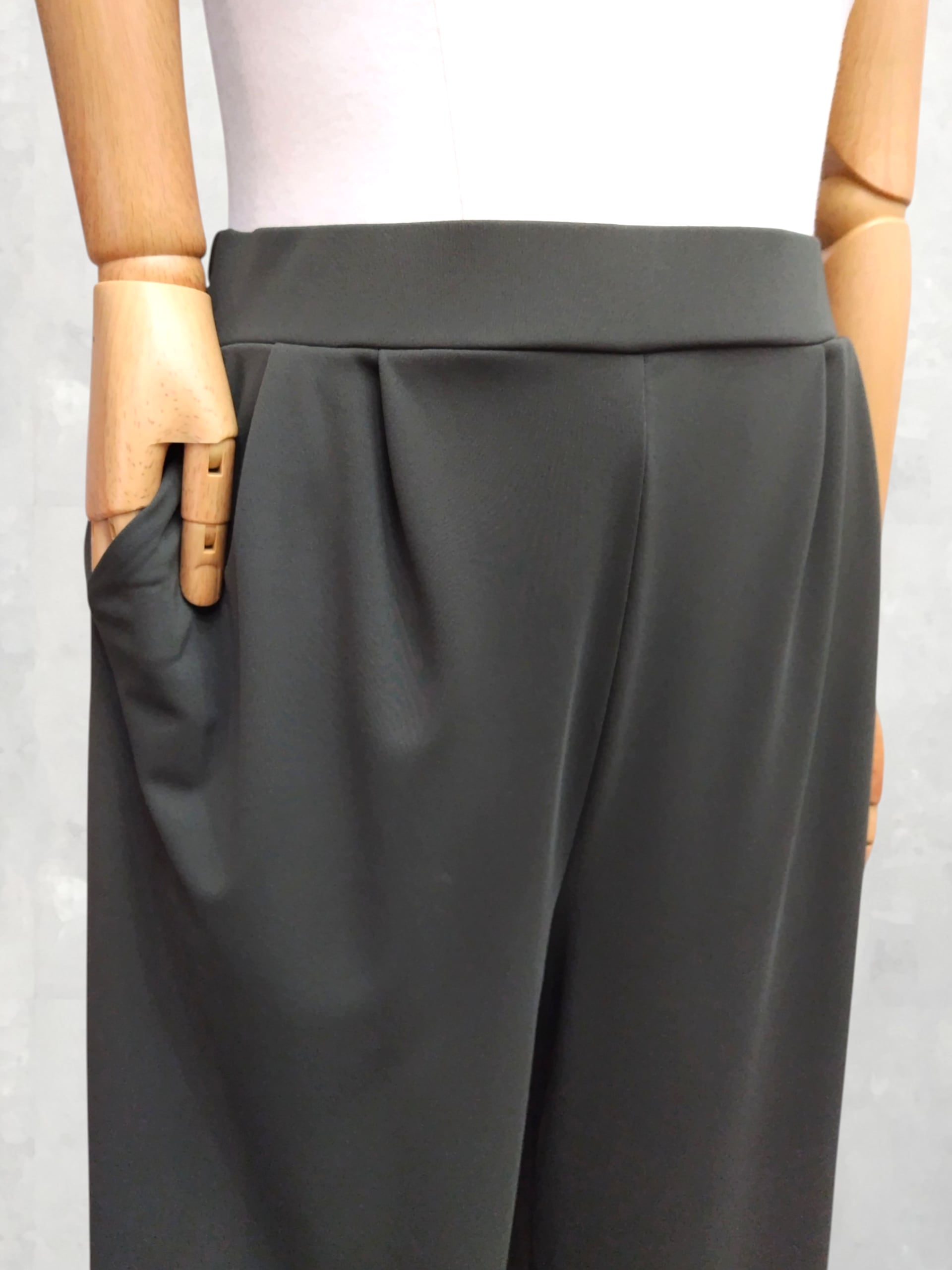 ウエストはプルオン仕様で、締めつけ感の少ないやさしいはき心地。