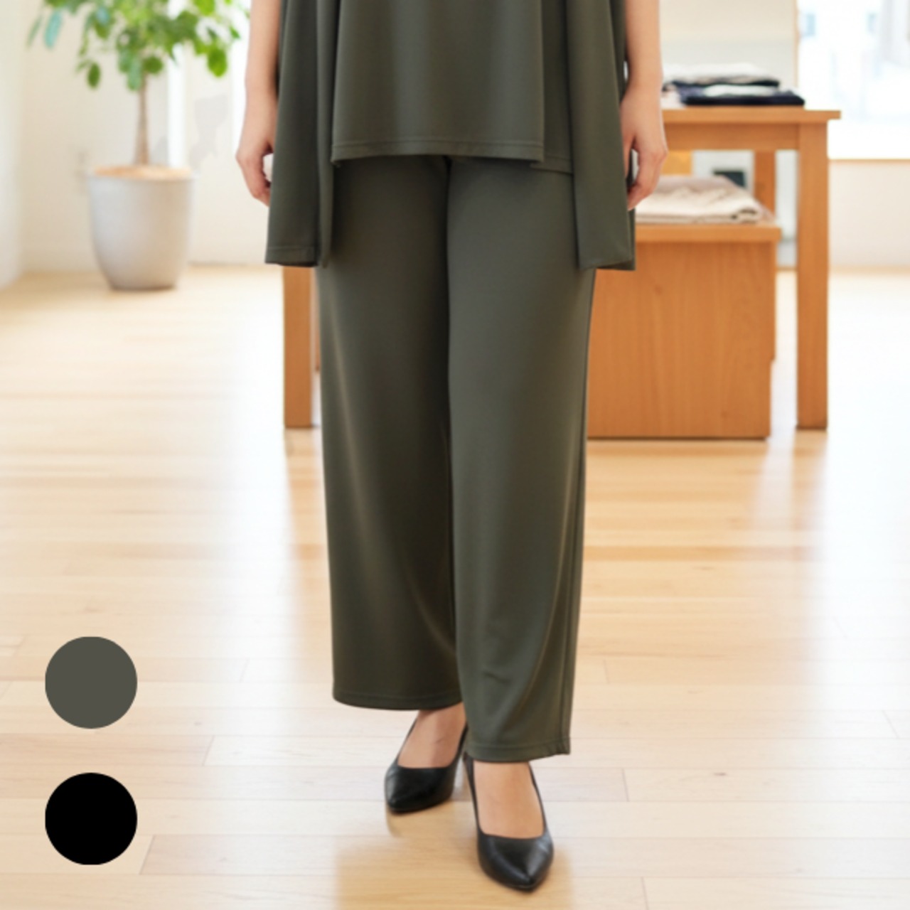 【大きいサイズ】きれい見えイージーパンツ【セットアップ対応商品】 < LA COUPE >