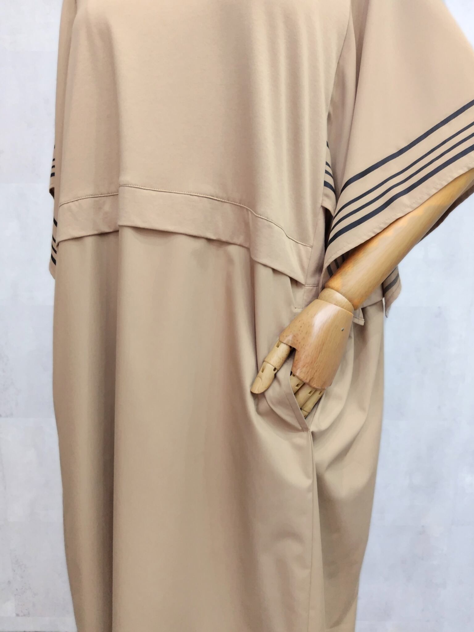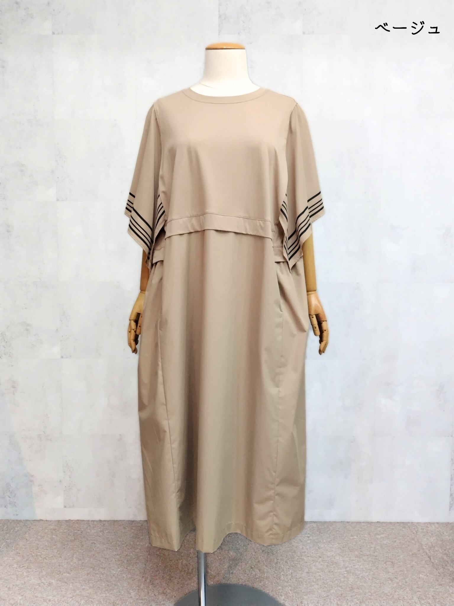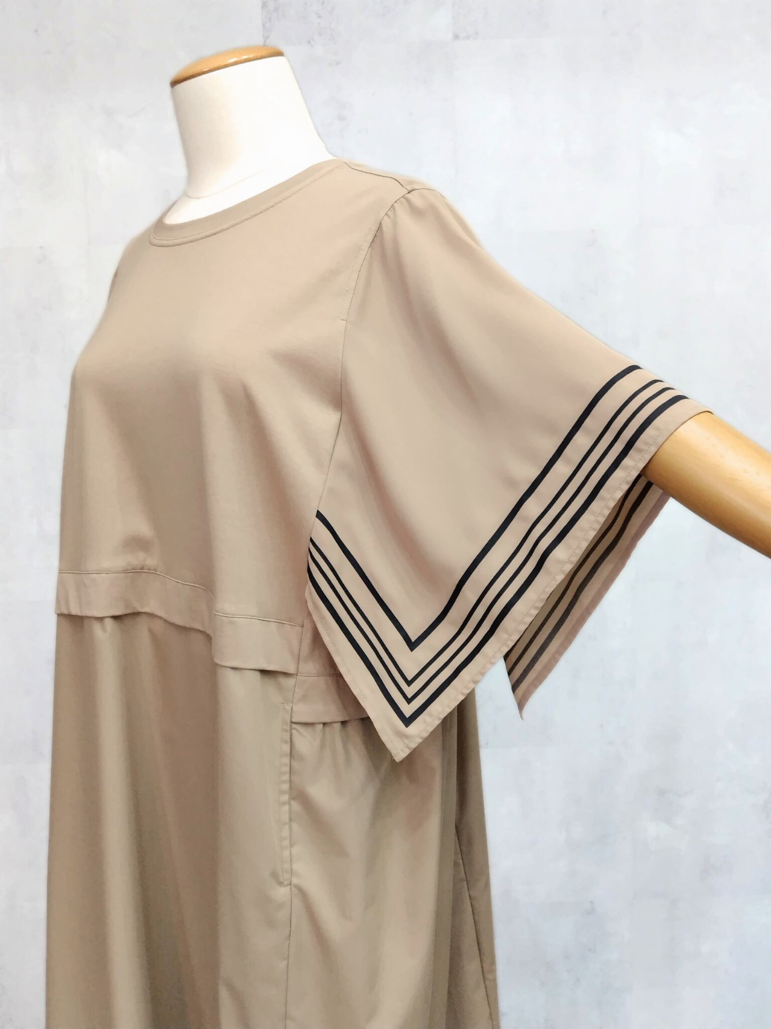 【大きいサイズ】ラインスリーブワンピース <SEPIA>