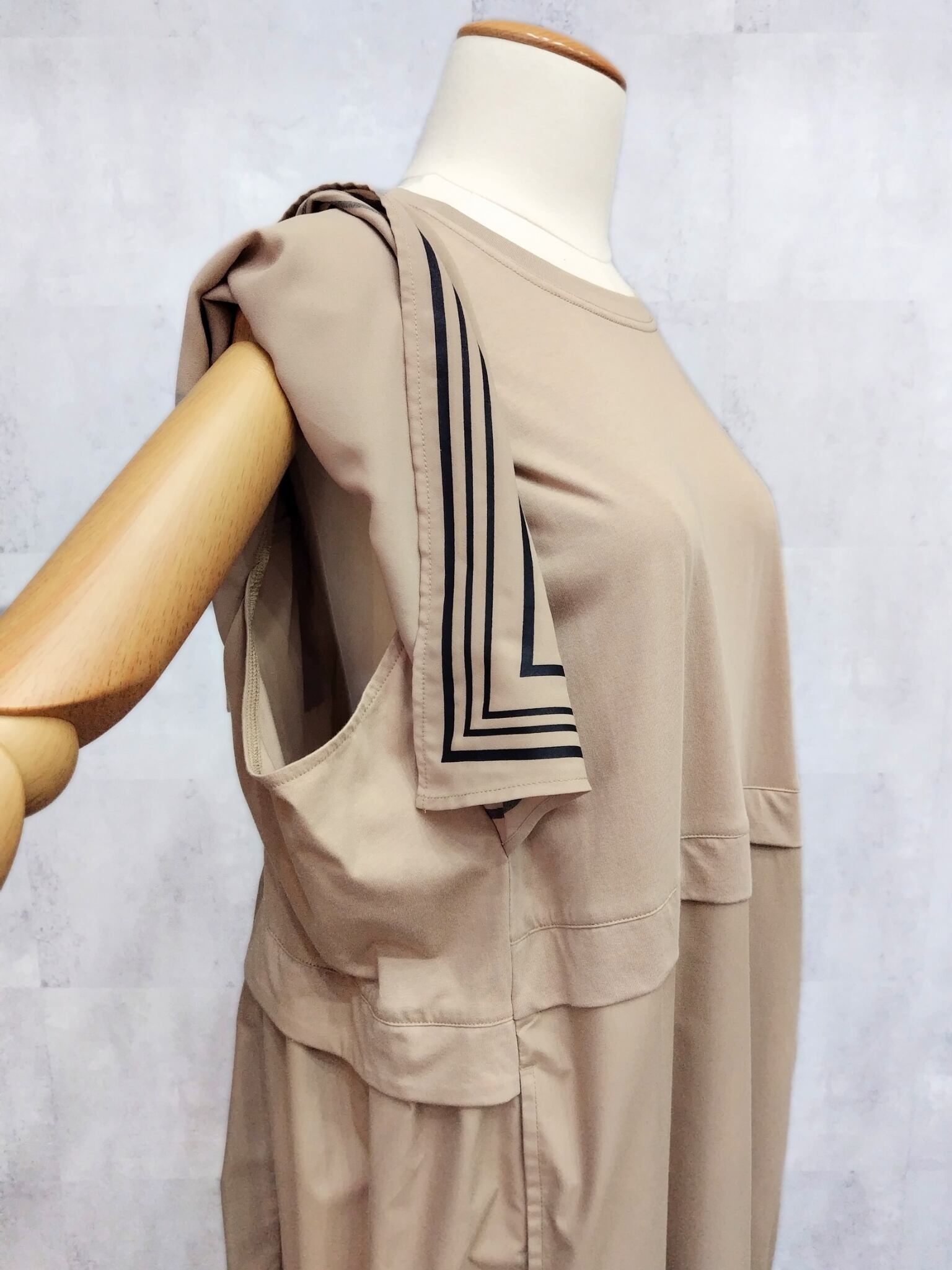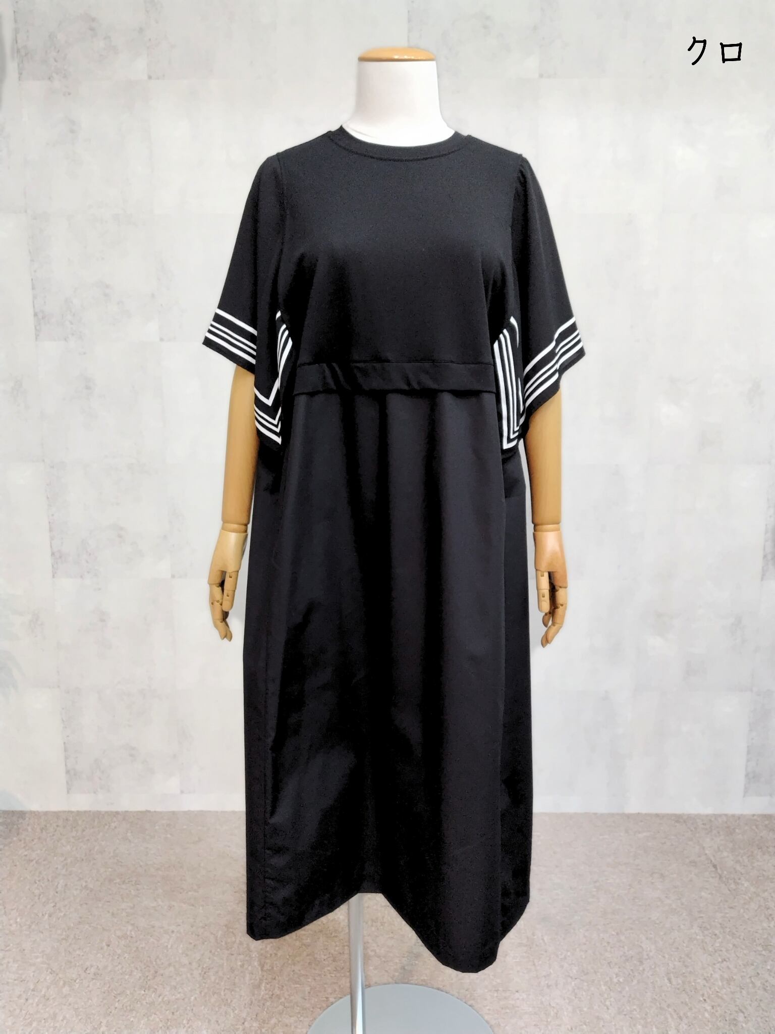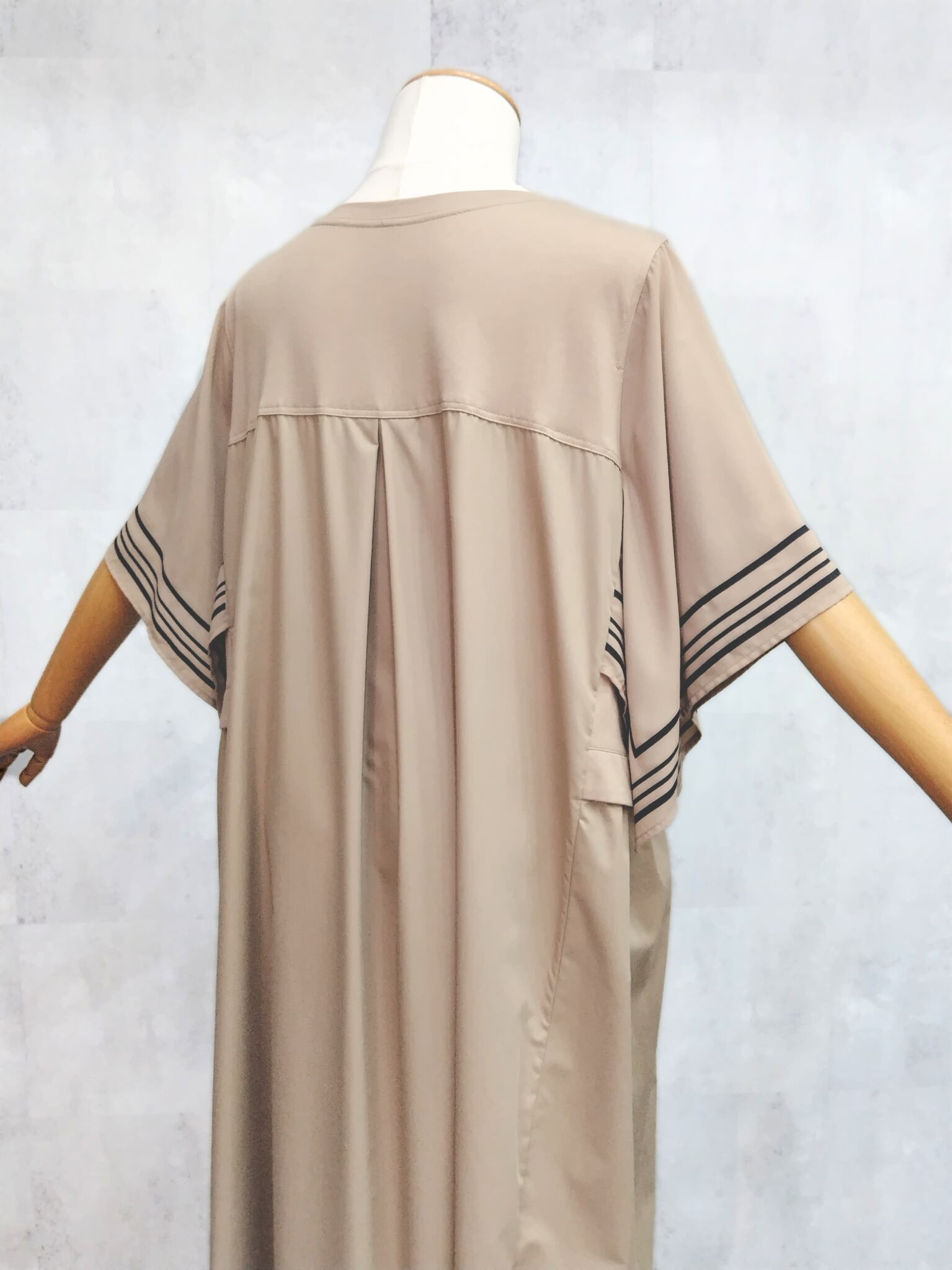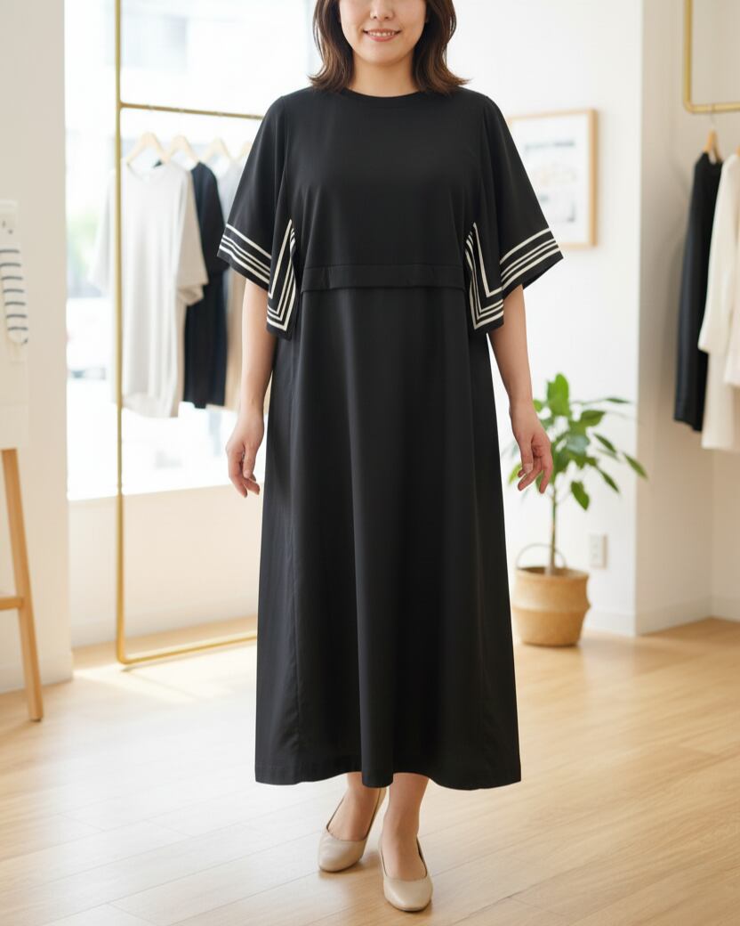 【大きいサイズ】ラインスリーブワンピース <SEPIA>