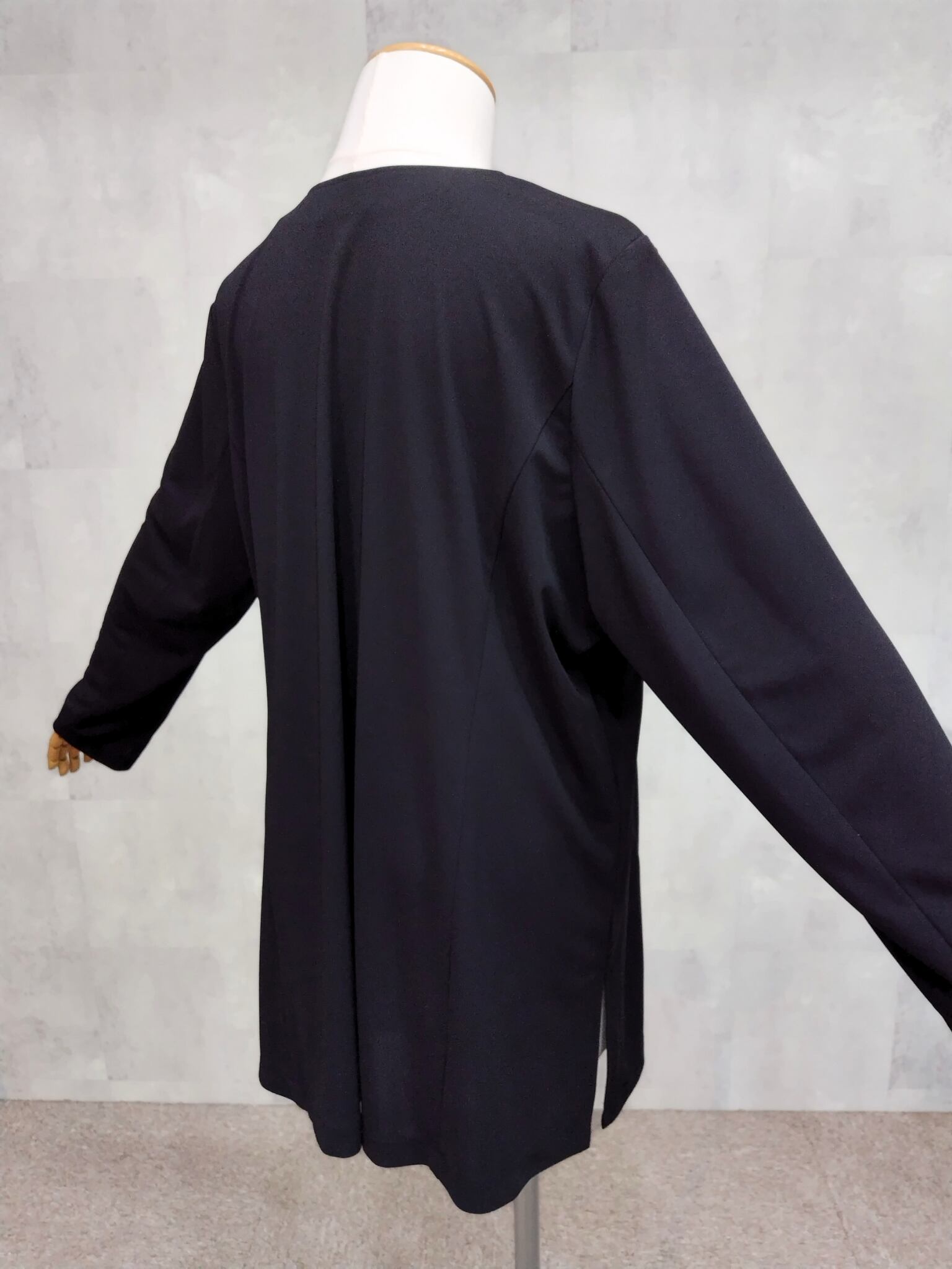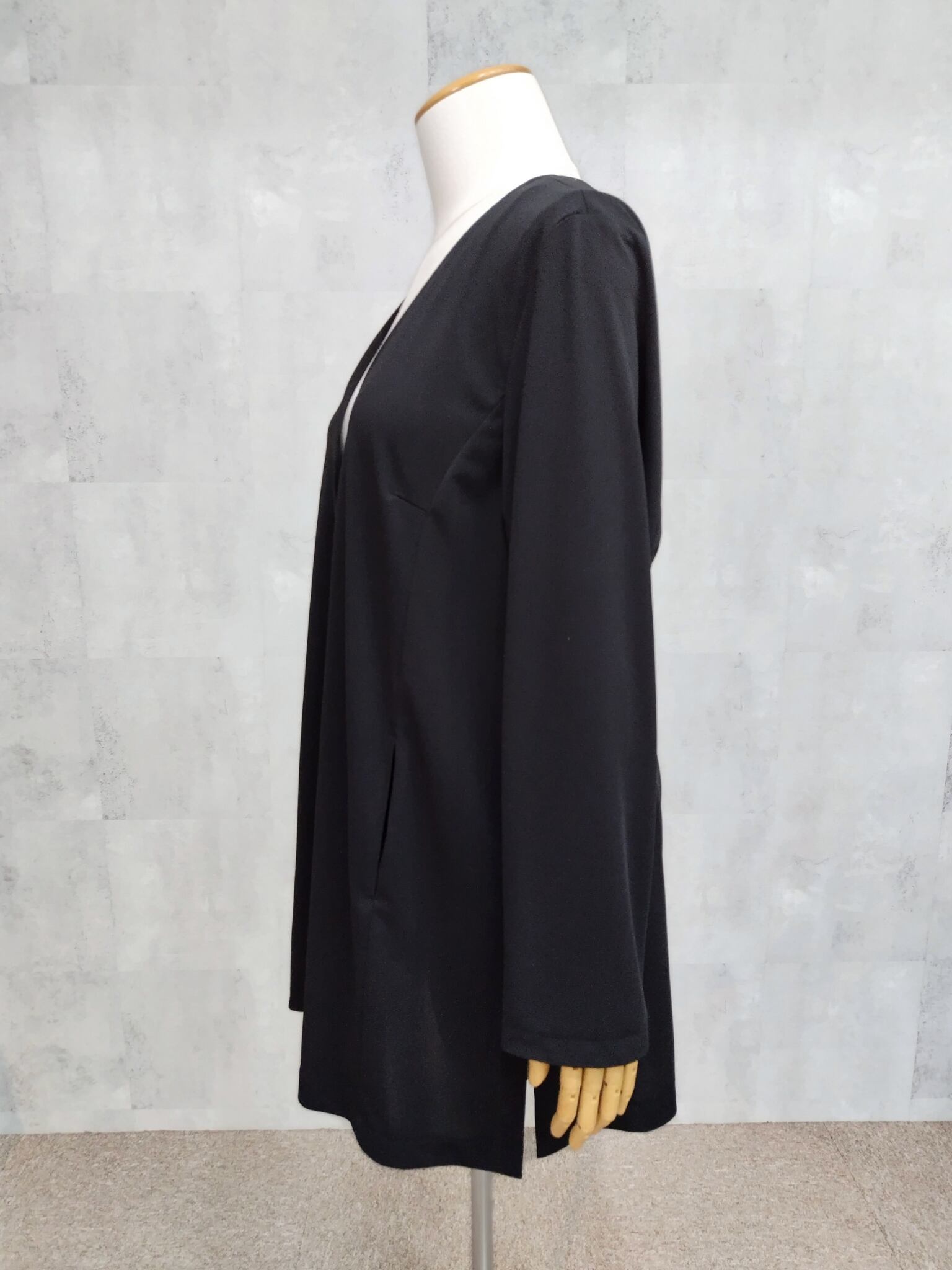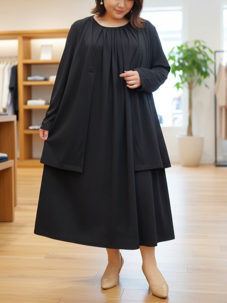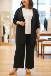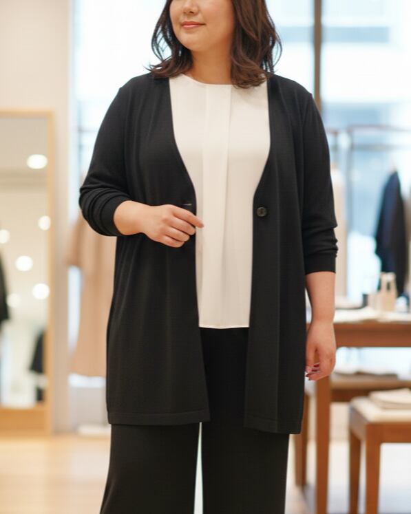 体のラインを拾いすぎず、羽織るだけで全体をバランスよく整えてくれます。