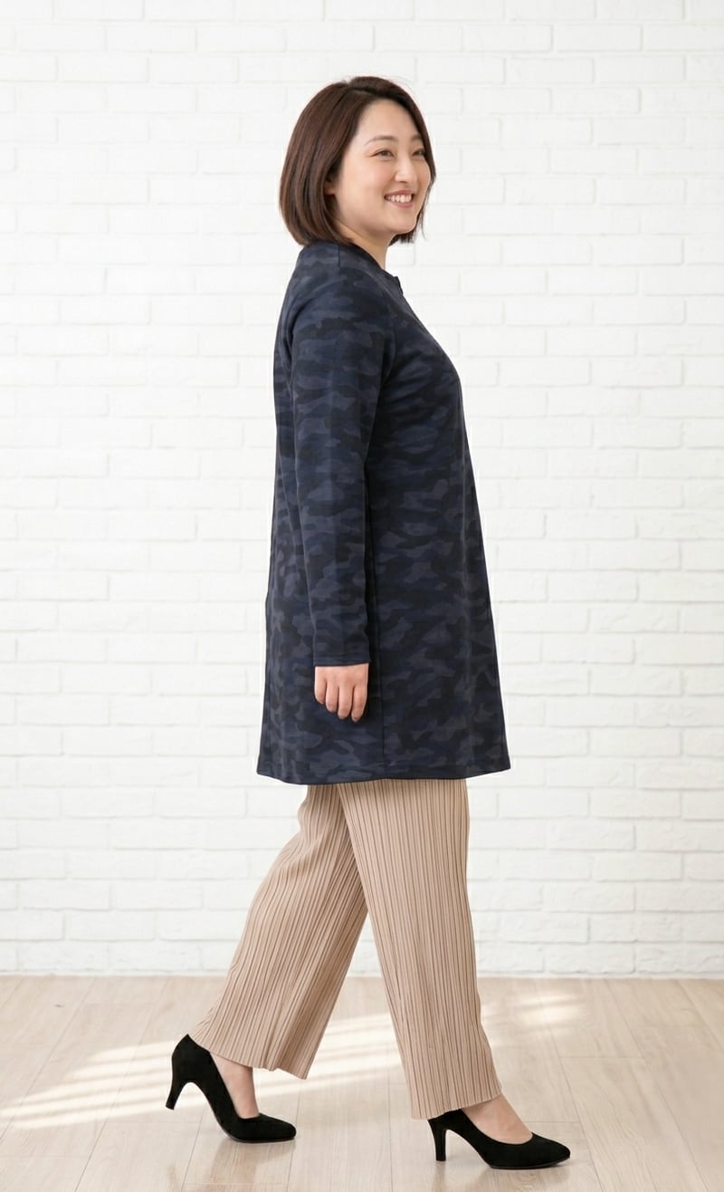 よく伸びる生地が動きにやさしく寄り添い、日常の動作もスムーズに。