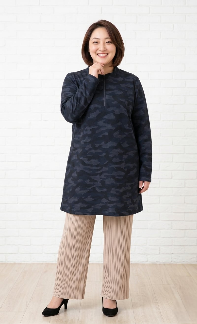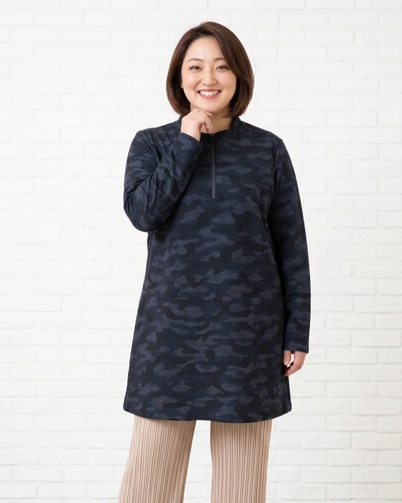 【大きいサイズ】迷彩柄ジッパーチュニック < Tasha ruby >