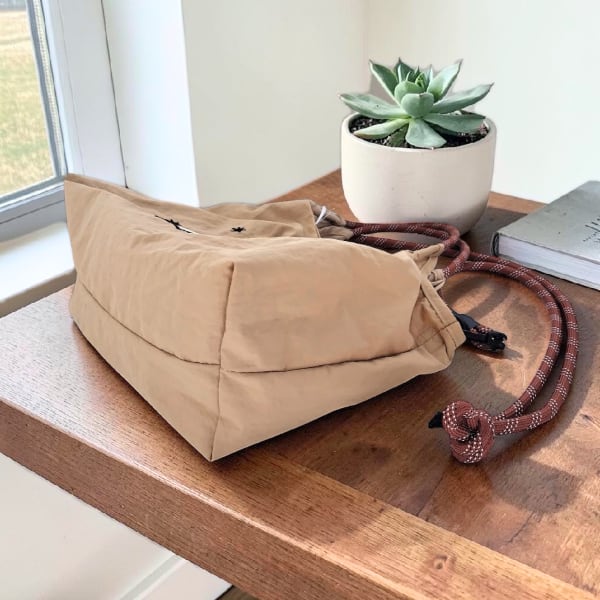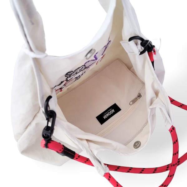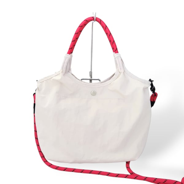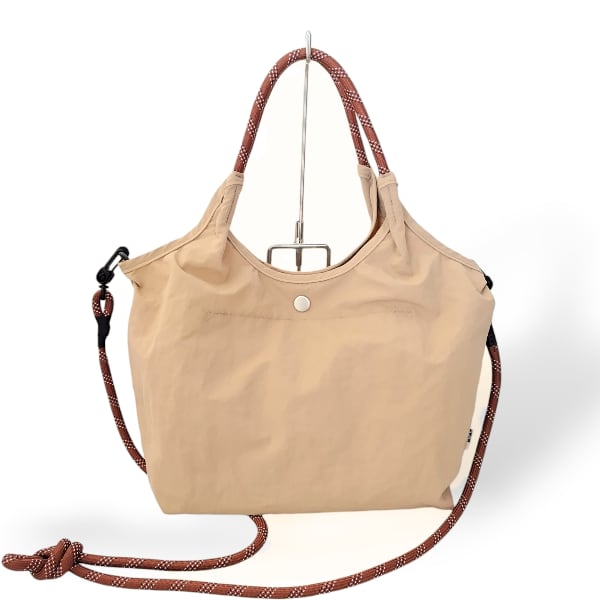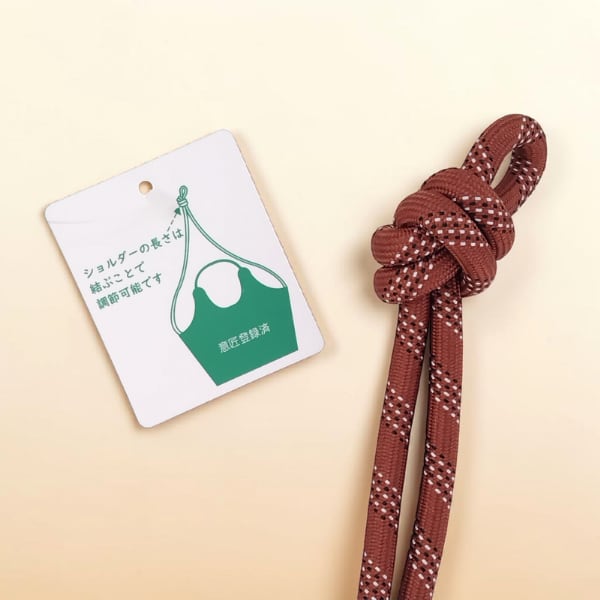 ショルダーは、結び目で長さ調整が可能。取り外せばトートバッグとしても使える2way仕様で、シーンやスタイルに合わせたアレンジが楽しめます。