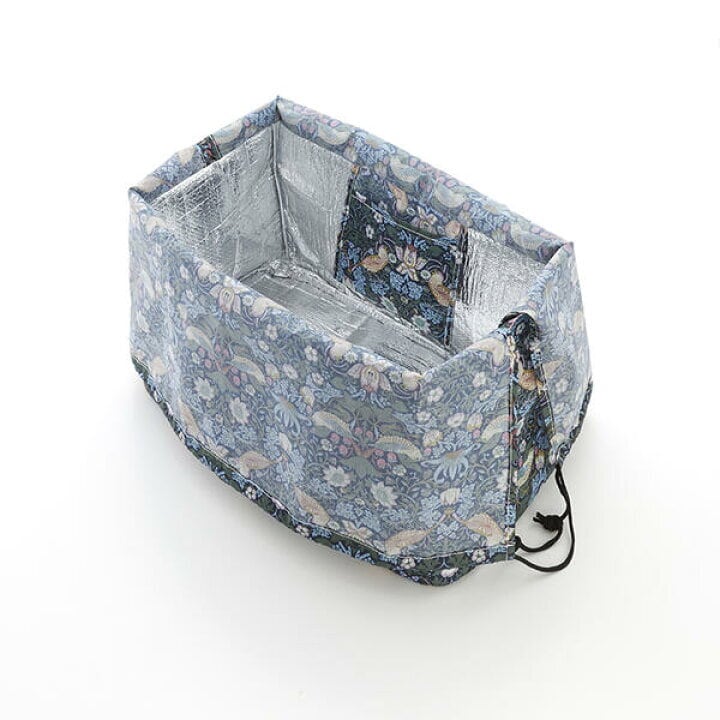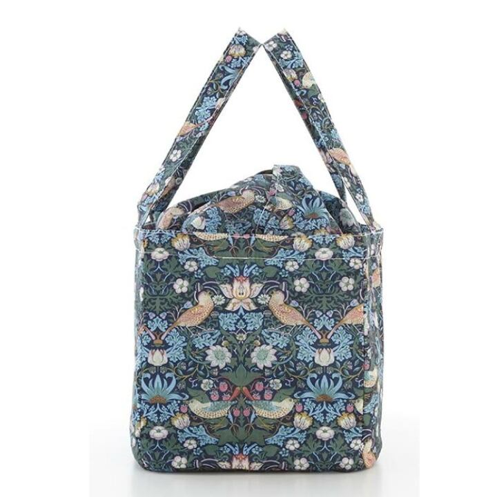 ウィリアム・モリスがデザインした「ストロベリーシーフ柄」のレジカゴバッグ。