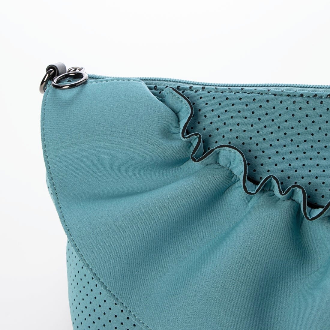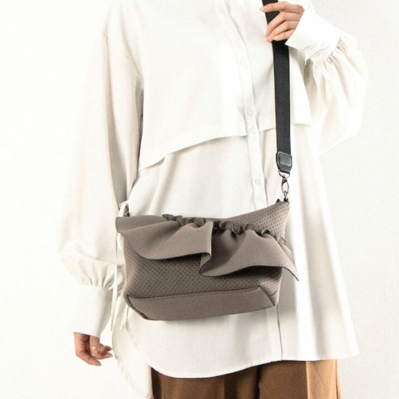 前面のフリルデザインが印象的なフェミニンで大人可愛いショルダーバッグ。