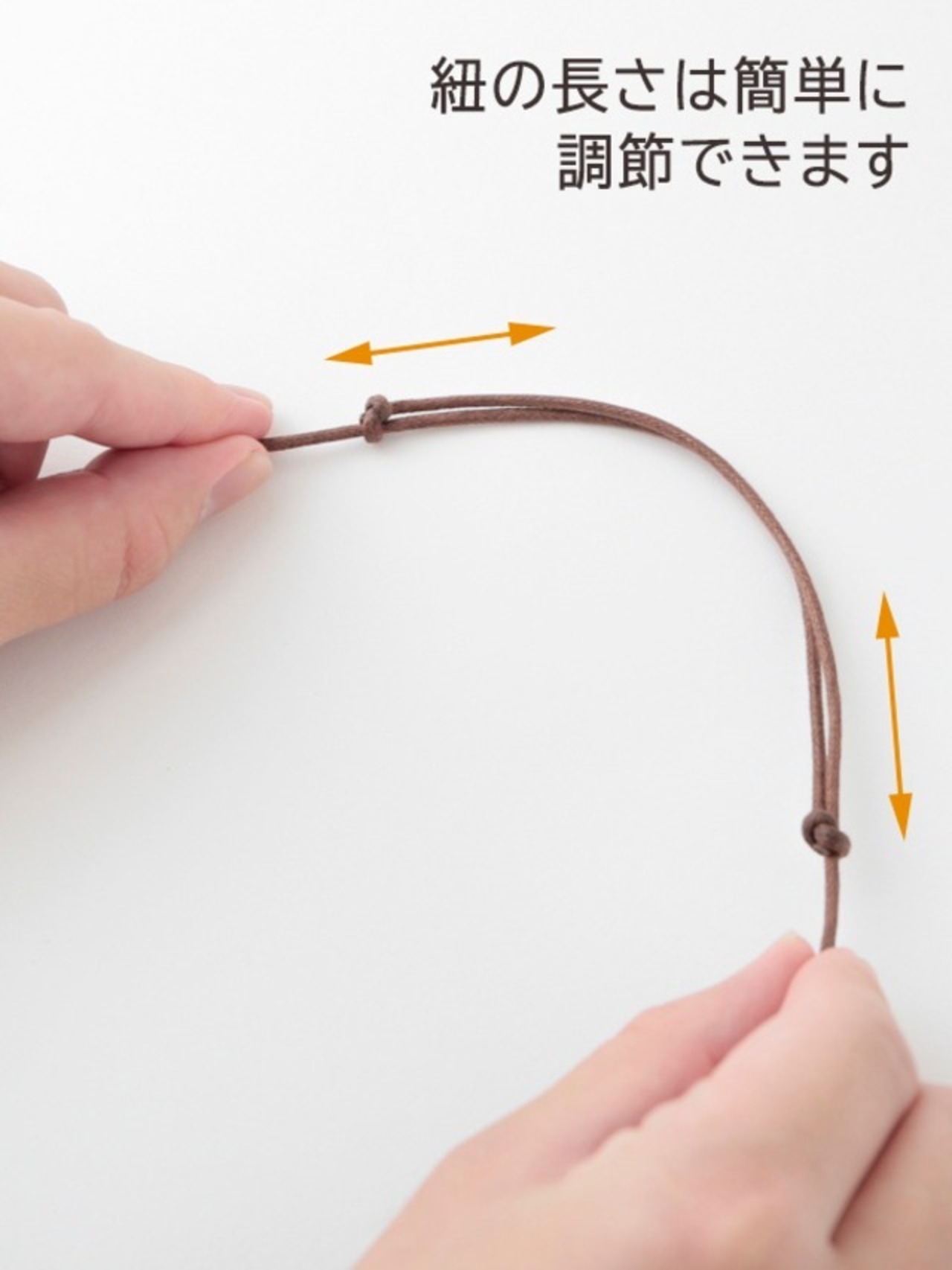 紐は長さ調整可能なので、ファッションに合わせてお楽しみいただけます。