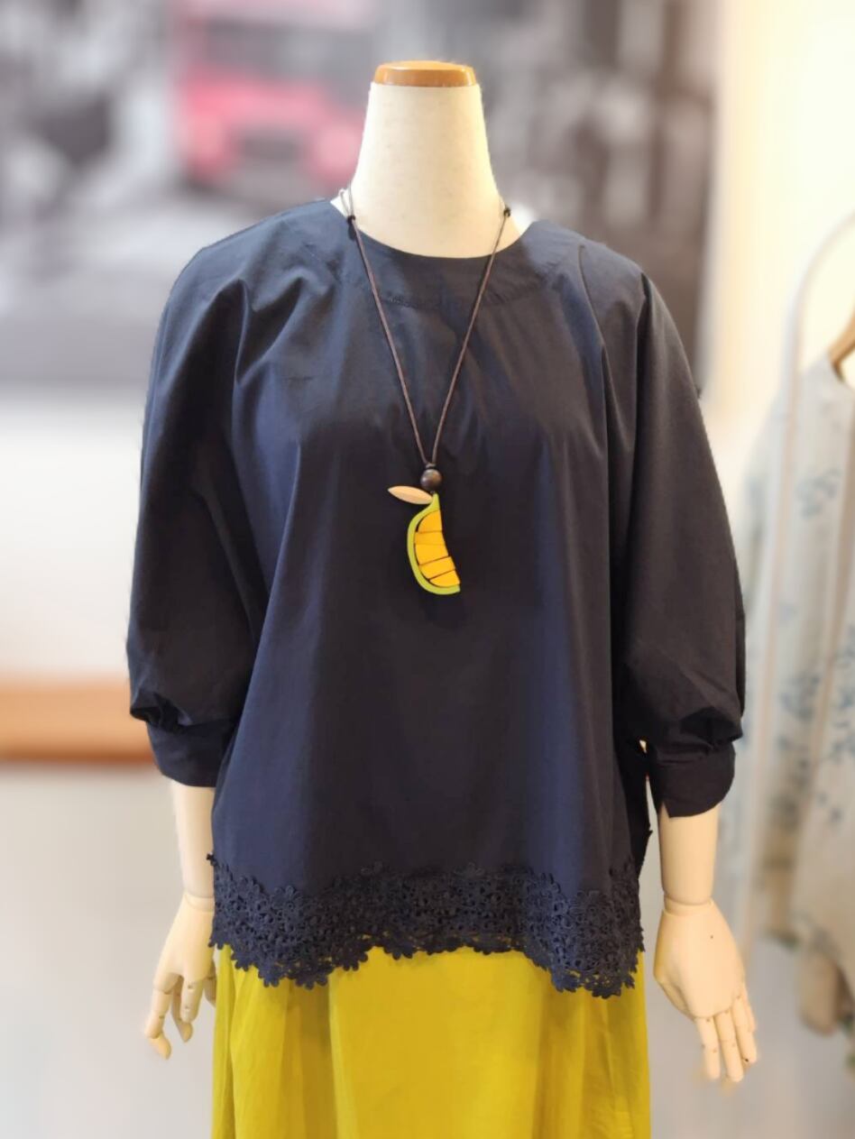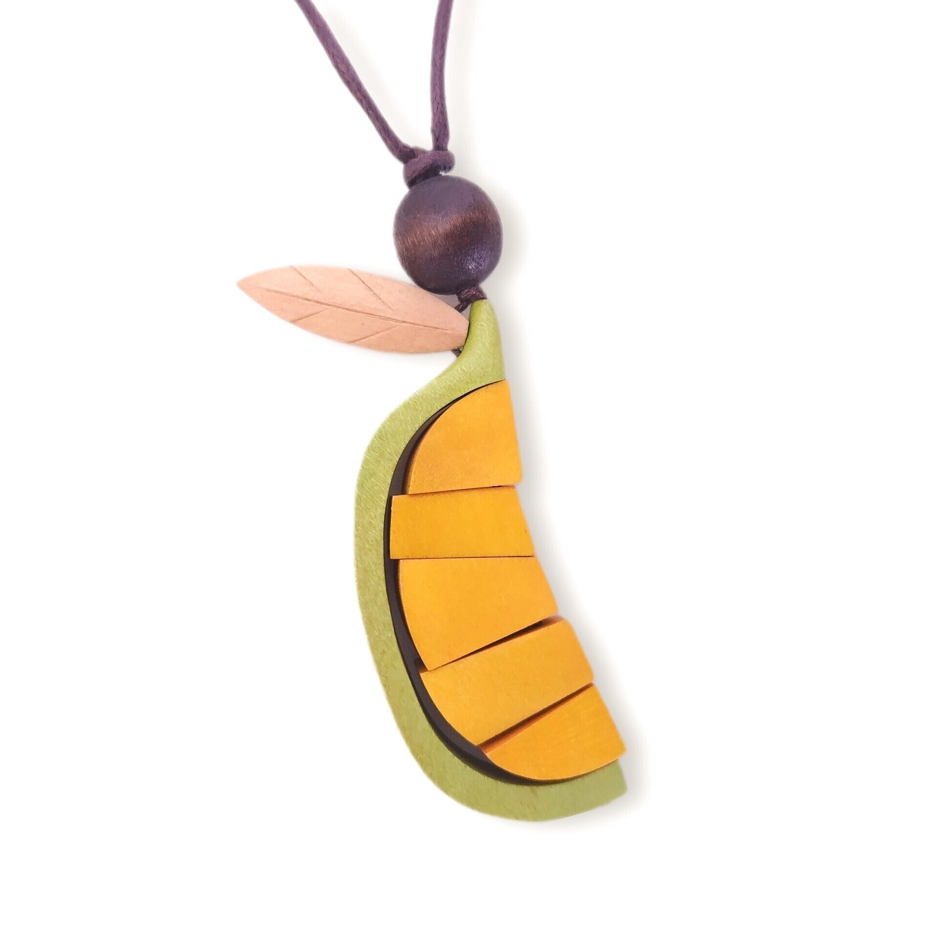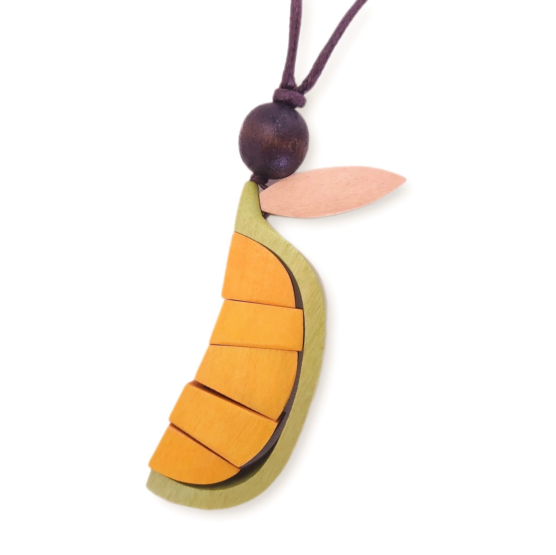カットされたフルーツデザインが表情豊かな、ウッド素材のネックレス。