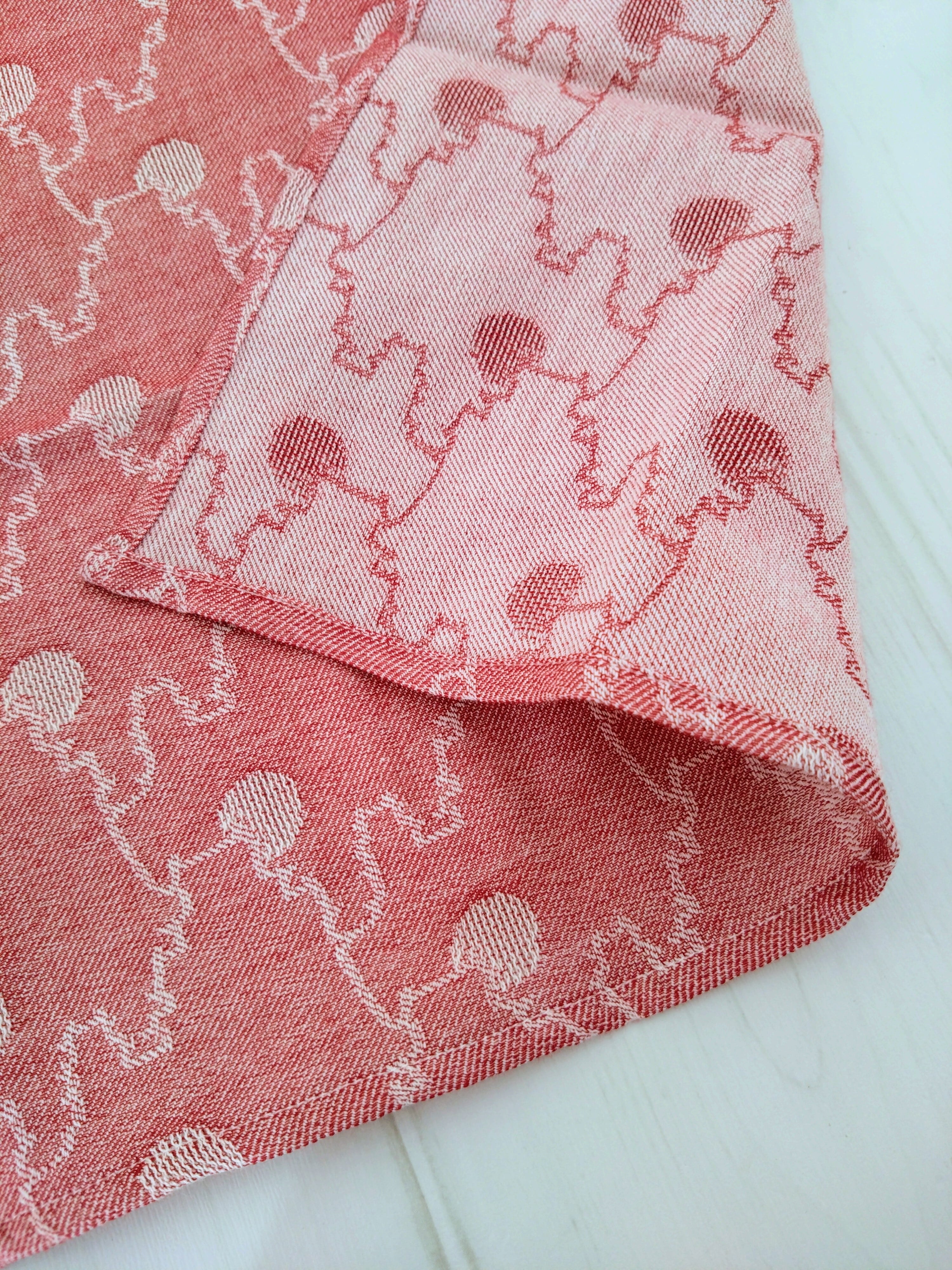 こちらのハンカチは、兵庫県西脇市の伝統織物・播州織に、ジャガードカラミ織りという高度な技術を組み合わせて作られています。