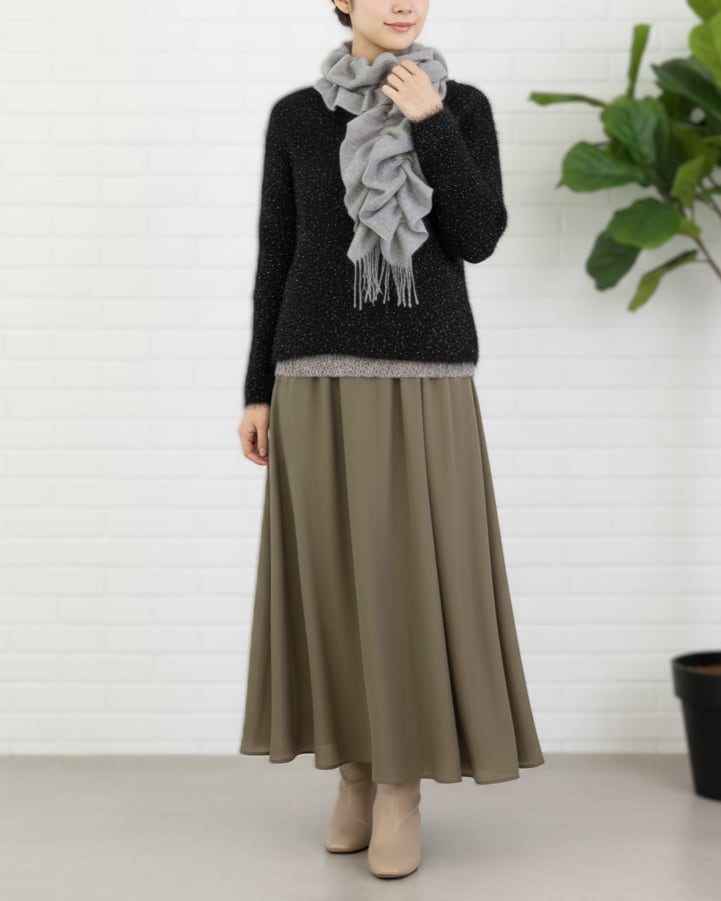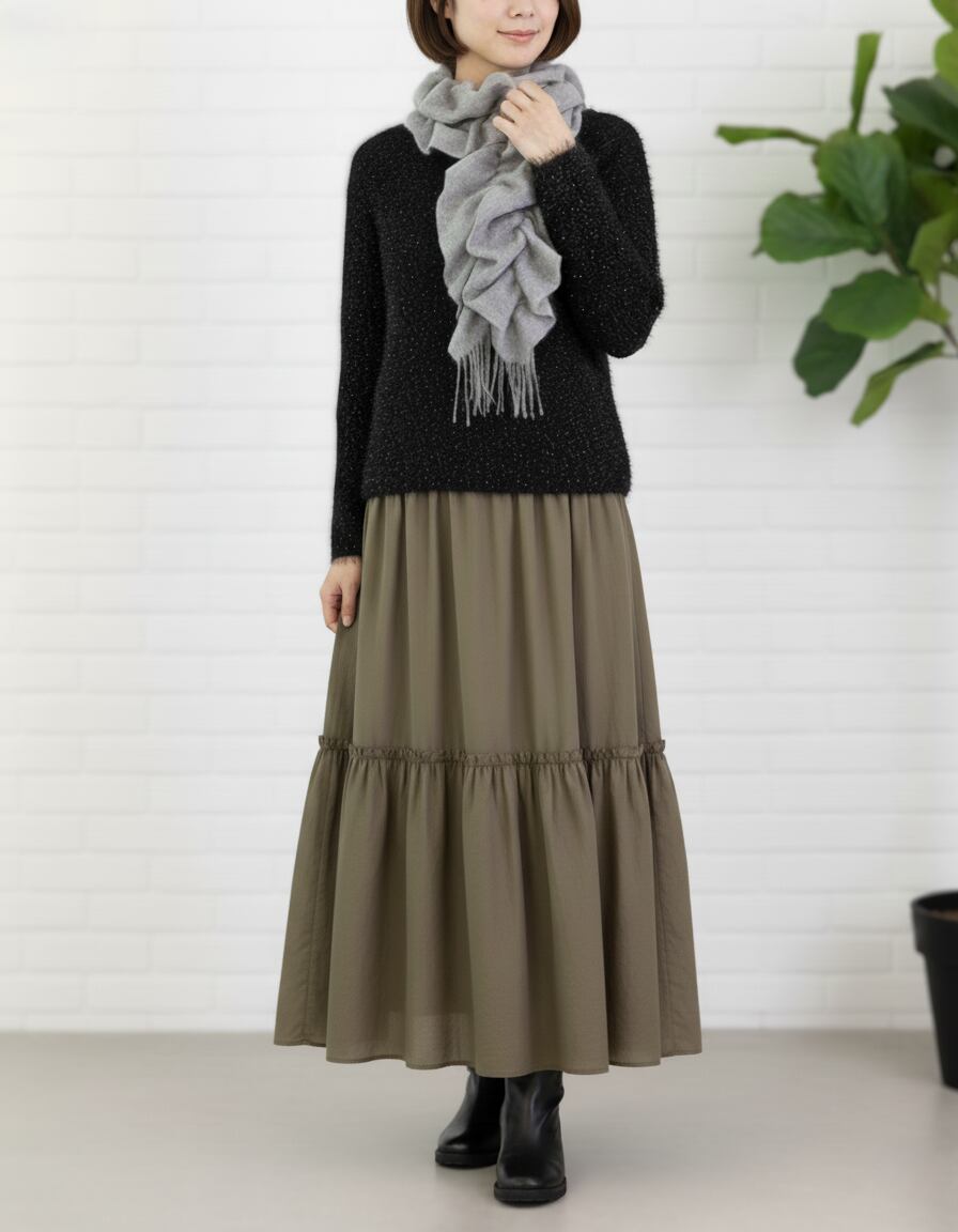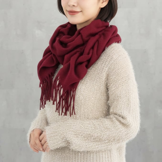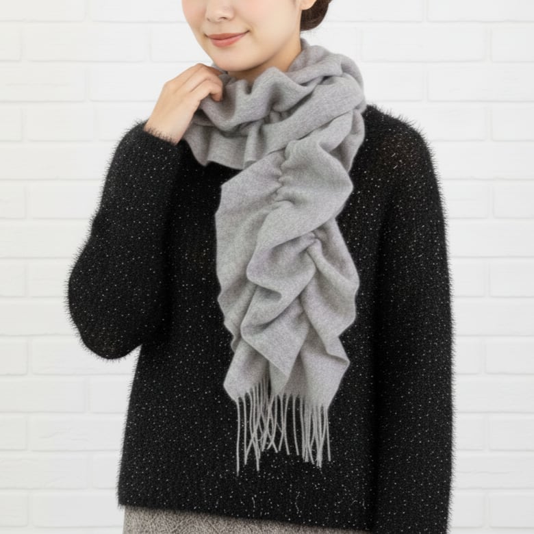 単に暖かいだけでなく、コートやニットとのバランスを美しく整え、巻き方ひとつで陰影が変わるため、同じ日でも気分に合わせて雰囲気を変えて楽しめます。
