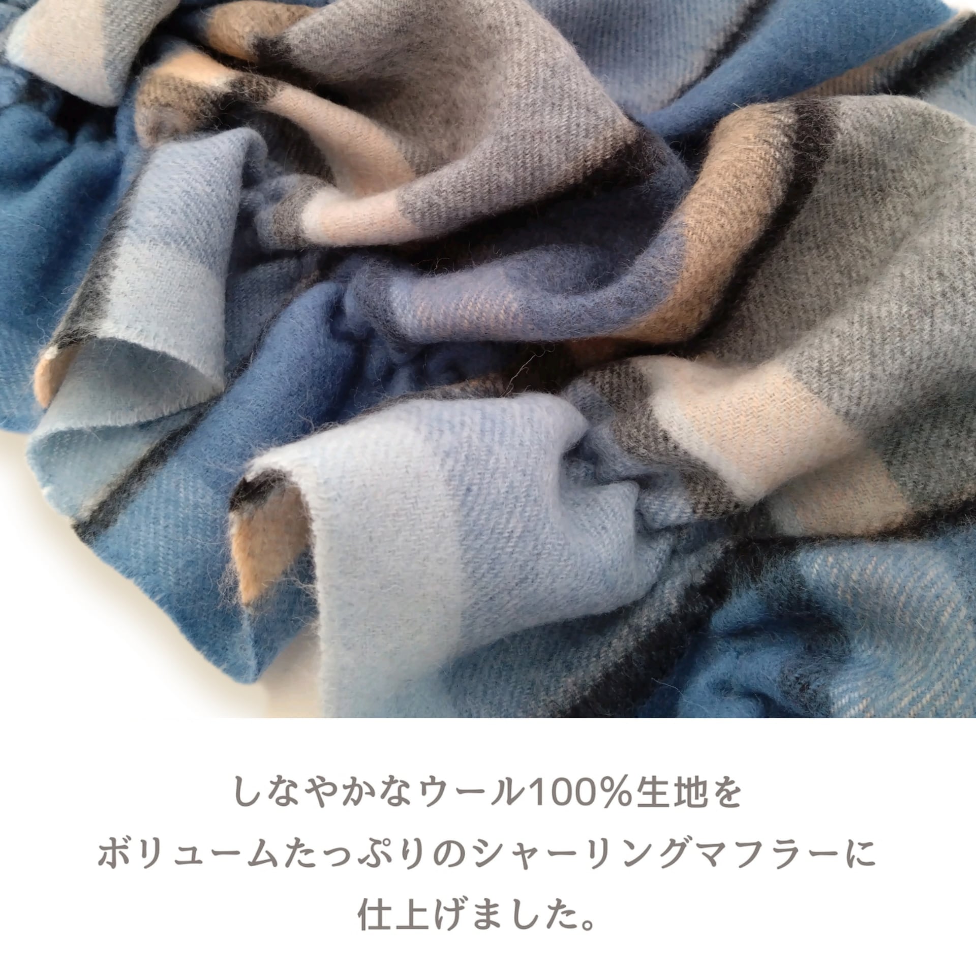 巻き方によってさまざまな表情が生まれる、シャーリングマフラー。